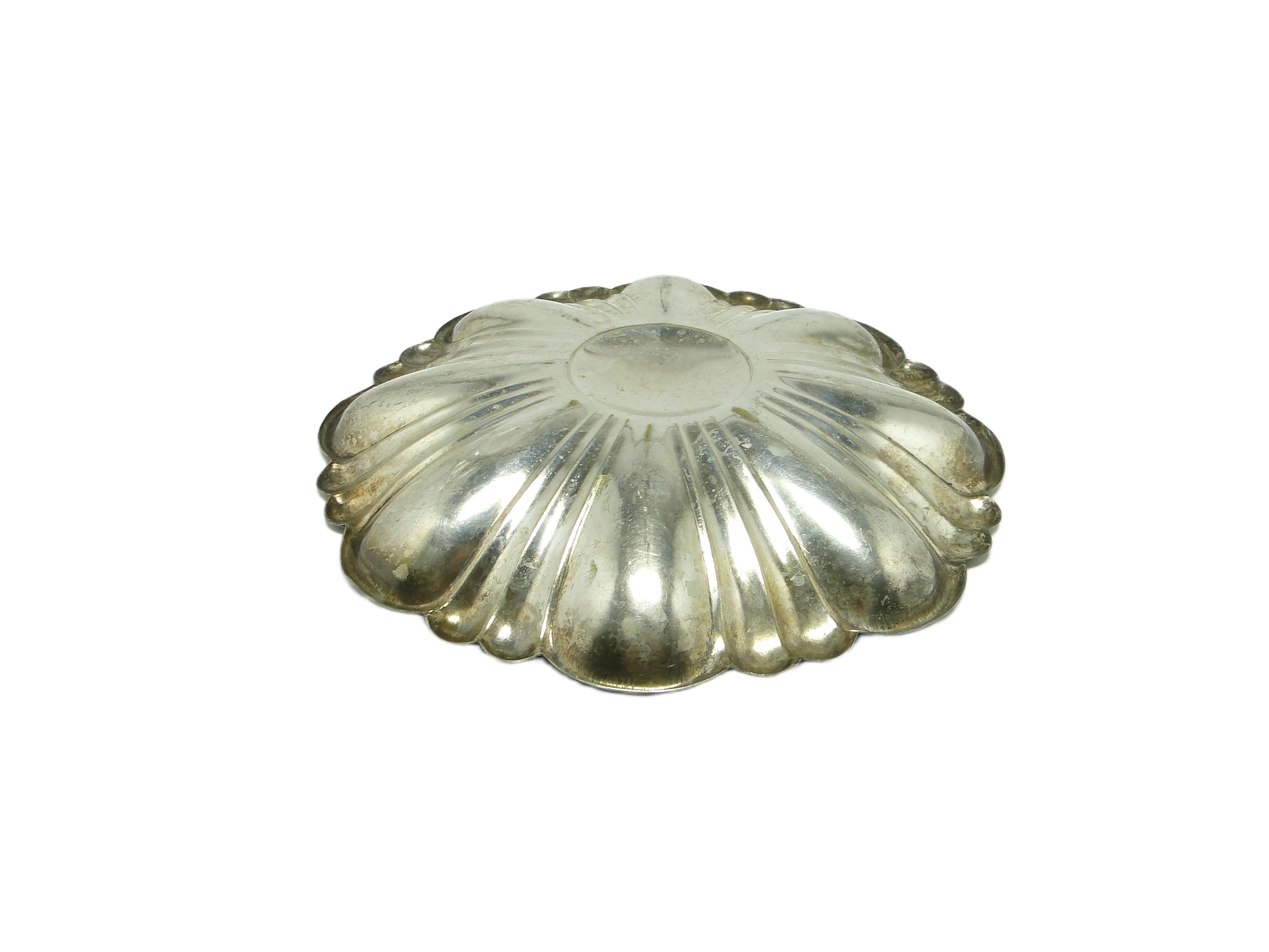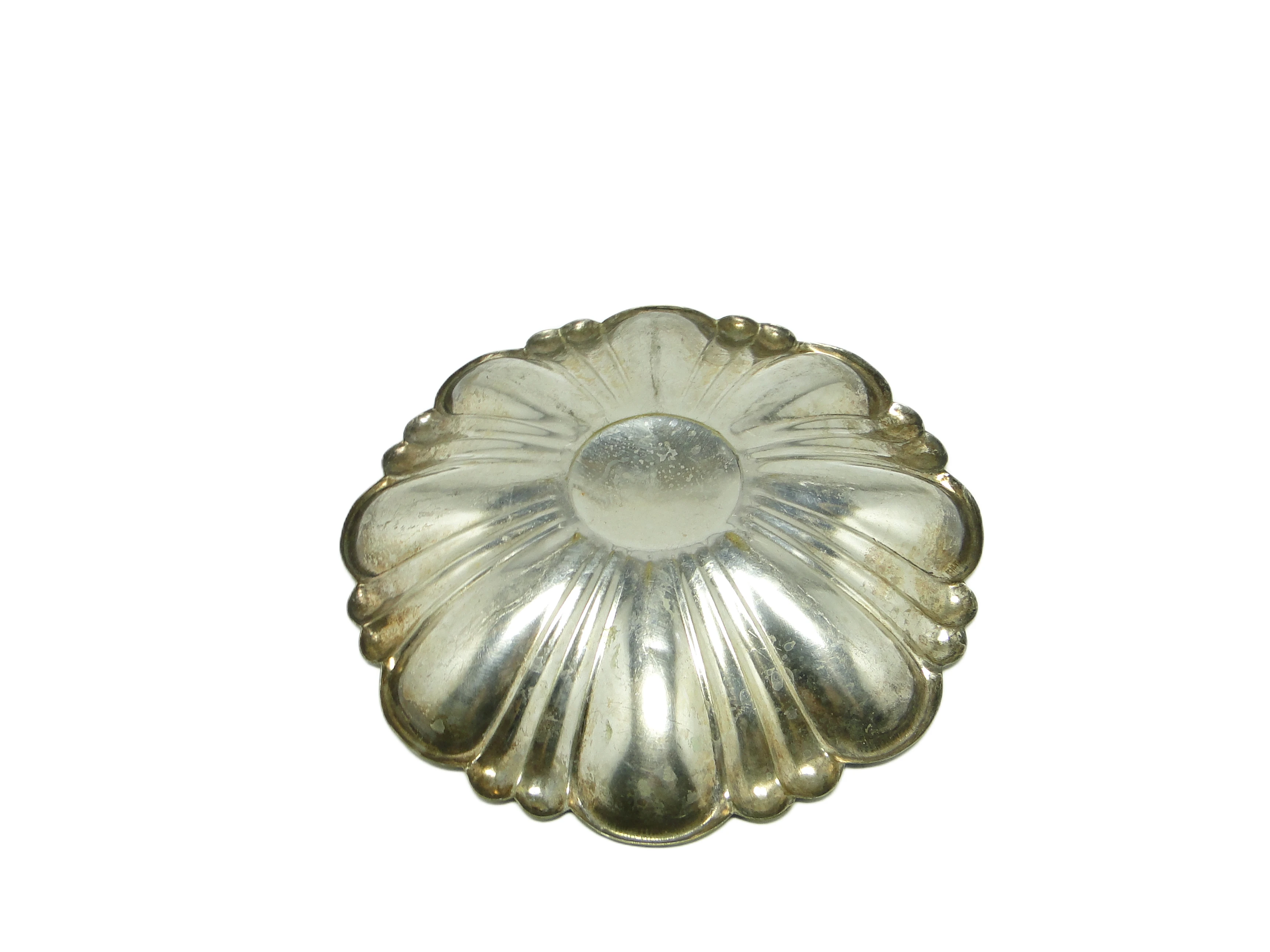 Patera secesyjna z lat 70., wykonana w Polsce z mosiądzu srebrzonego, przyciąga uwagę rzeźbiarską formą inspirowaną motywem kwiatu. Promieniście rozchodzące się, wypukłe żebrowania przywodzą na myśl płatki, które harmonijnie zbiegają się w lekko zagłębionym, gładkim centrum. Obrzeże o falistym konturze wzmacnia organiczny, roślinny wyraz typowy dla secesji. Powierzchnia patery jest gładka, z wyraźnie zarysowanymi żebrowaniami i połyskującym, ciepłym srebrem, którego odcień przełamuje lekka, naturalna patyna. Brak dodatkowych okuć, nóżek czy uchwytów podkreśla czystość i szlachetność formy, a staranne wykonanie zdradza dbałość o detale charakterystyczną dla polskiego rzemiosła metalowego tej epoki. Stan zachowania bardzo dobry; widoczne są jedynie drobne ryski i delikatna patyna odpowiednia dla przedmiotów vintage, bez wgnieceń czy uszkodzeń konstrukcji.Patera zdaje się szeptać historię lat 70., kiedy secesyjny ornament przeżywał subtelny renesans we wnętrzach, a polskie rzemiosło poszukiwało dialogu z dawnymi mistrzami. Wypukłe żebrowania łapią światło jak płatki o poranku, przypominając domowe rytuały, w których przedmioty codziennego użytku nabierały znaczenia rzeźbiarskiego akcentu. Miękki połysk srebra i falisty rytm formy przywołują atmosferę stołów, na których każdy detal był przemyślany, a dekoracyjność szła w parze z funkcjonalnością.Tę paterę można wyeksponować solo na konsoli w salonie lub połączyć z innymi naczyniami z tej samej epoki, tworząc zestaw vintage dekoracji. Dobrze odnajdzie się w aranżacjach mid-century modern, gdzie jej ciepły odcień podkreśli naturalne drewno i tekstylia. Warto zestawić ją z prostymi, geometrycznymi formami lub – dla kontrastu – z ceramiką o matowej powierzchni, by wydobyć rzeźbiarski charakter metalu i podkreślić botaniczny motyw.