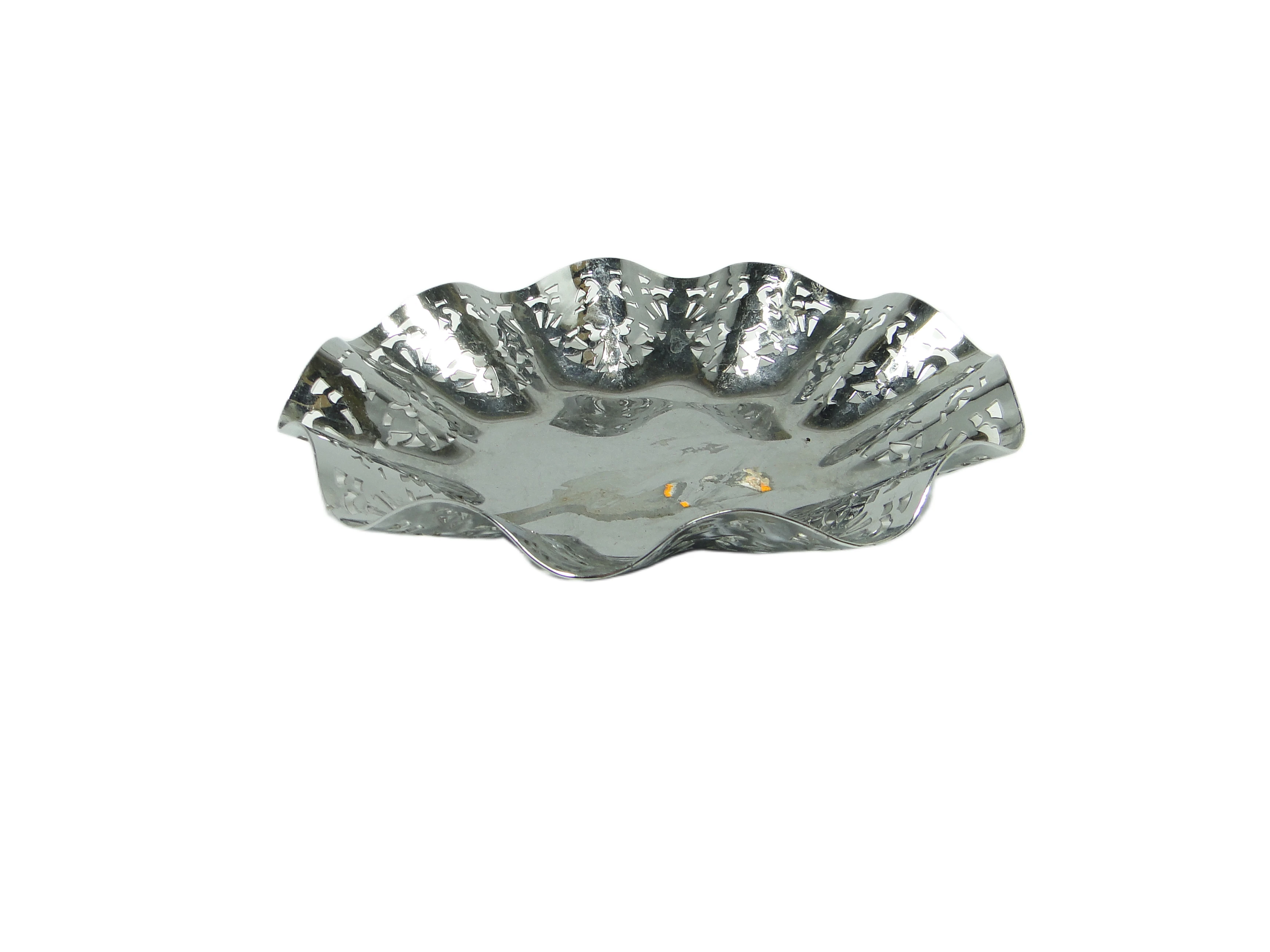 Patera ażurowa Art Deco, mosiądz chromowany, Niemcy, lata 50.