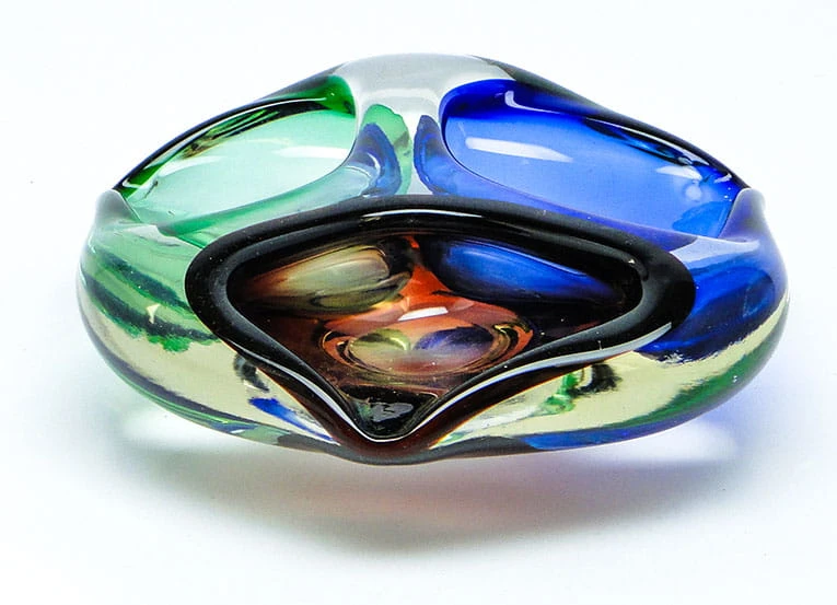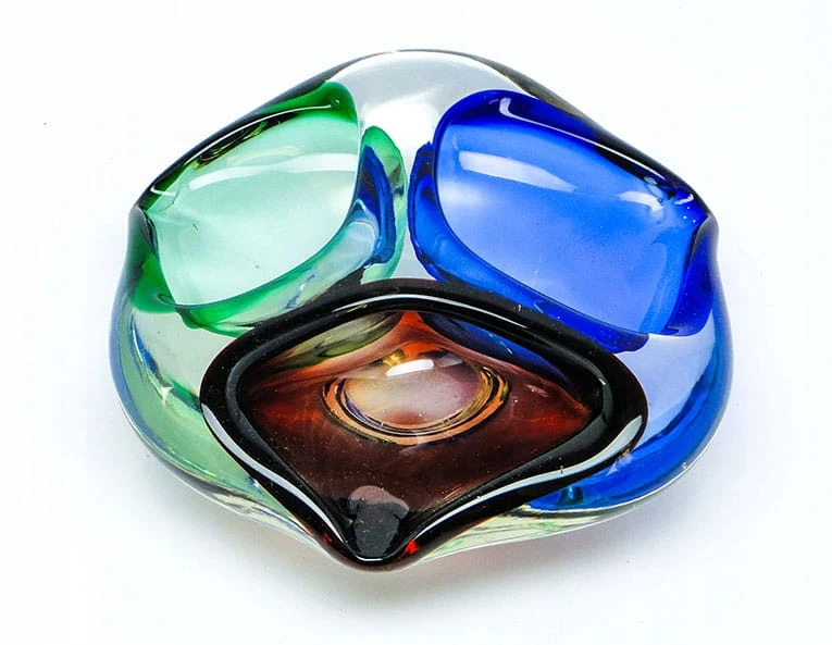 Patera trójdzielna wyprodukowana w czeskiej hucie szkła Mstisov.