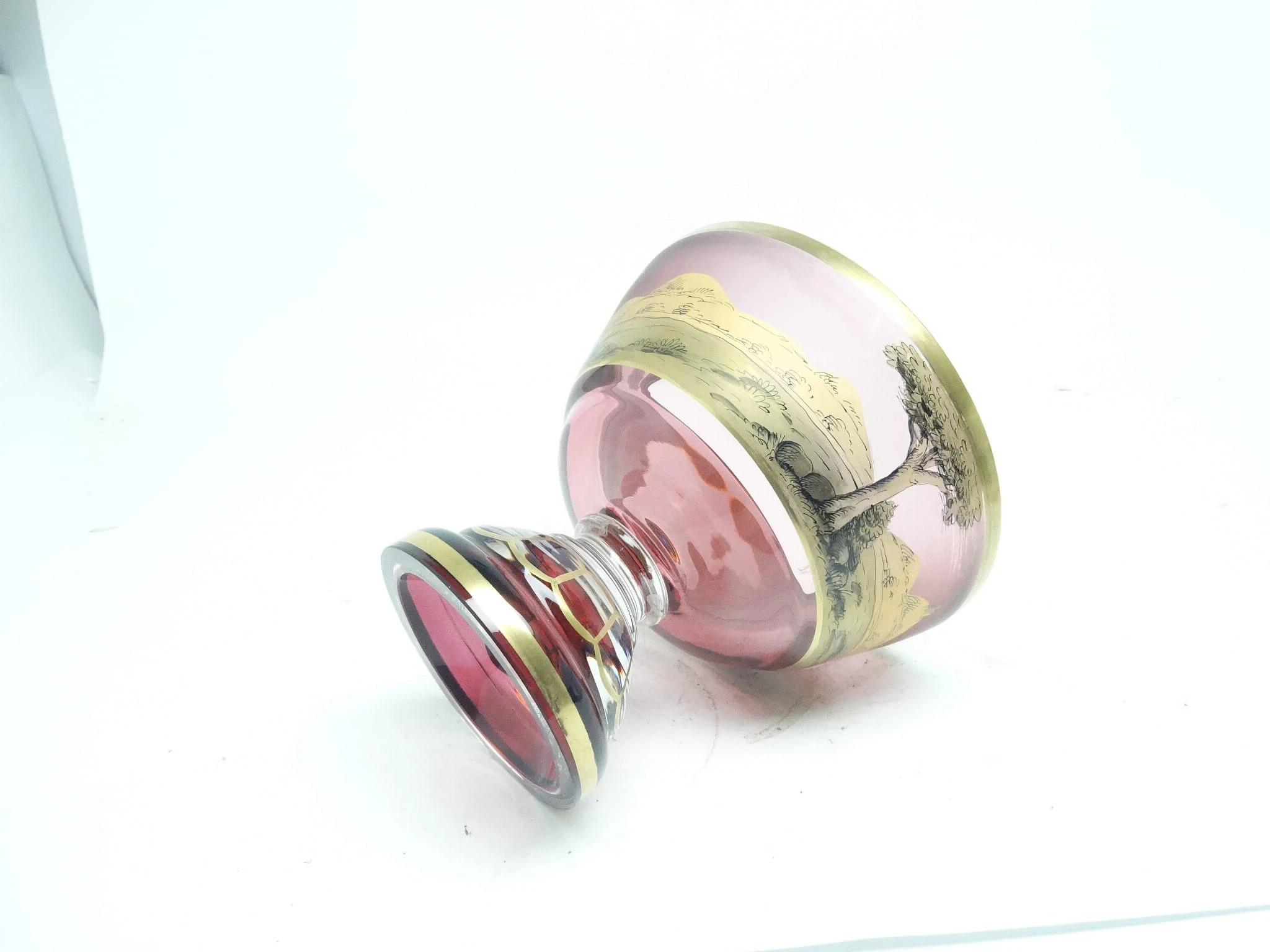 Wykonana ze szkła warstwowego, rubinowego, szlifowanego i zdobionego złoceniami. RECZNIE MALOWANA!