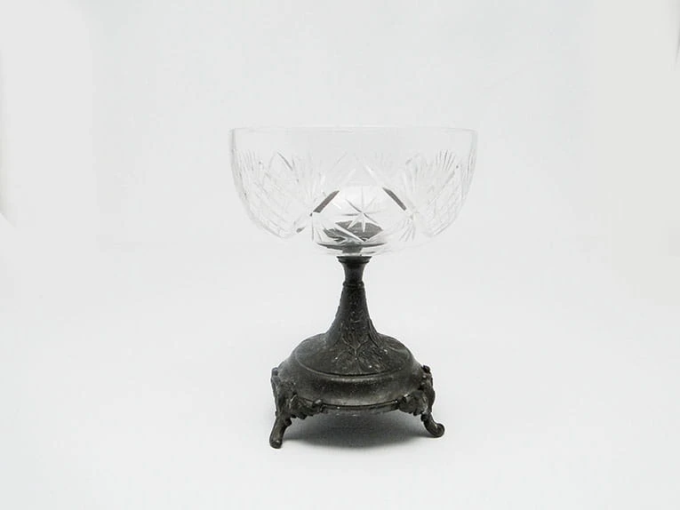 Cynowa patera na owoce.