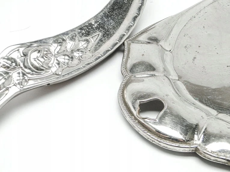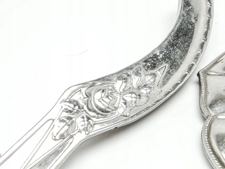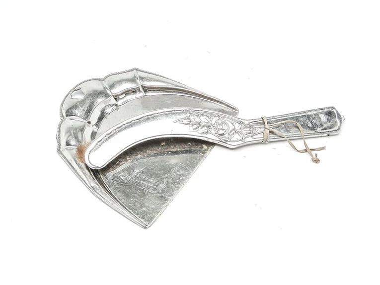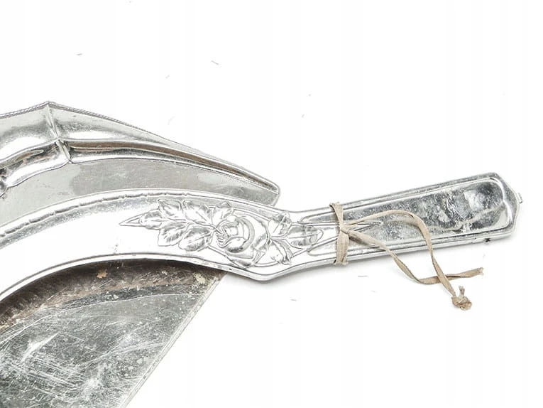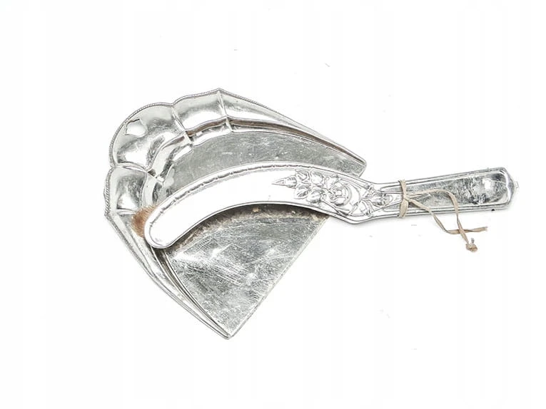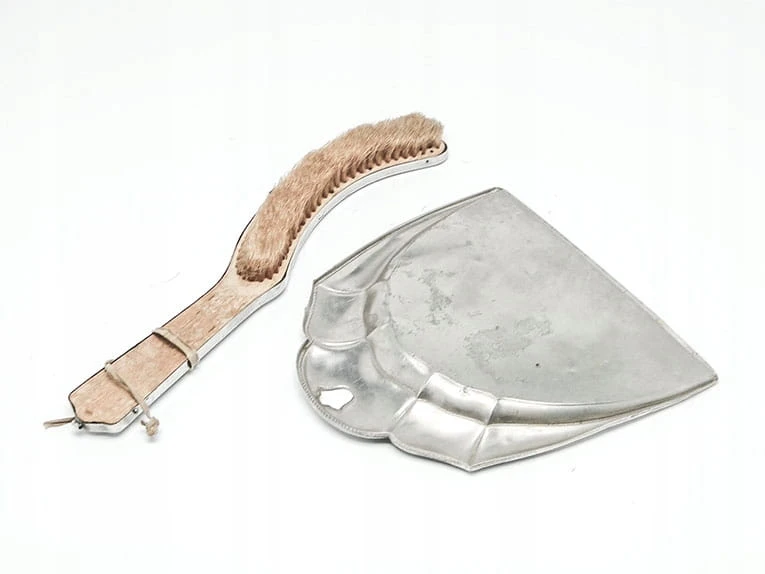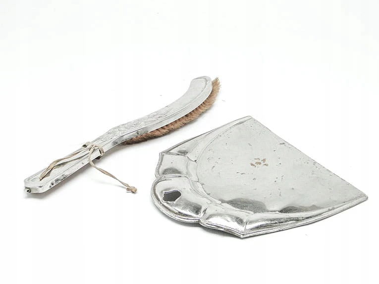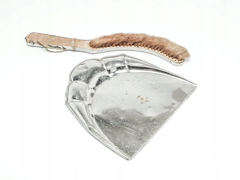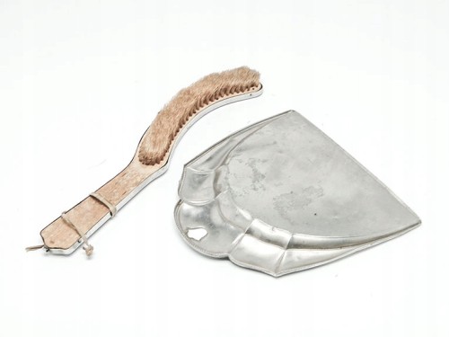 Mosiężna szufelka ze zmiotką w stylu secesyjnym.