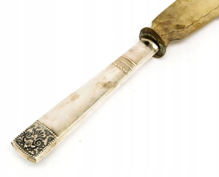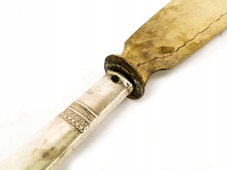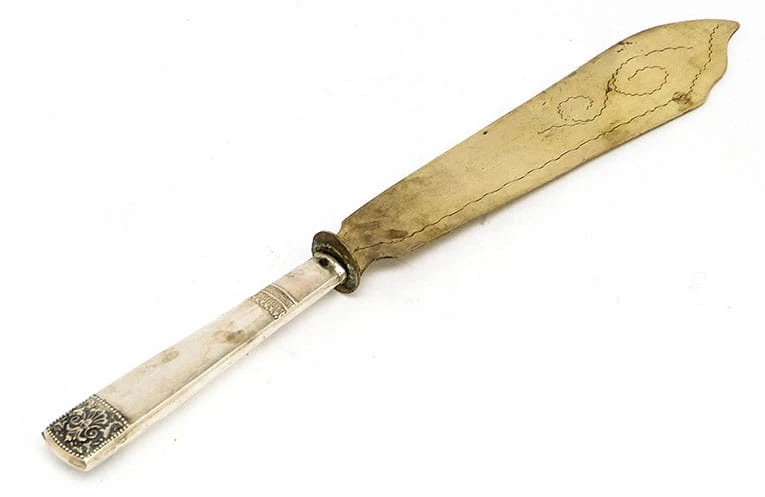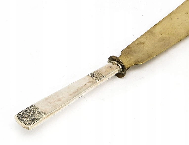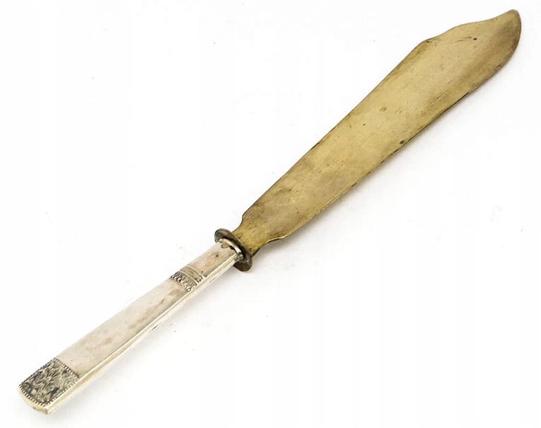 Przedmiotem aukcji jest srebrny nóż do masła wykonany na terenie Polski.