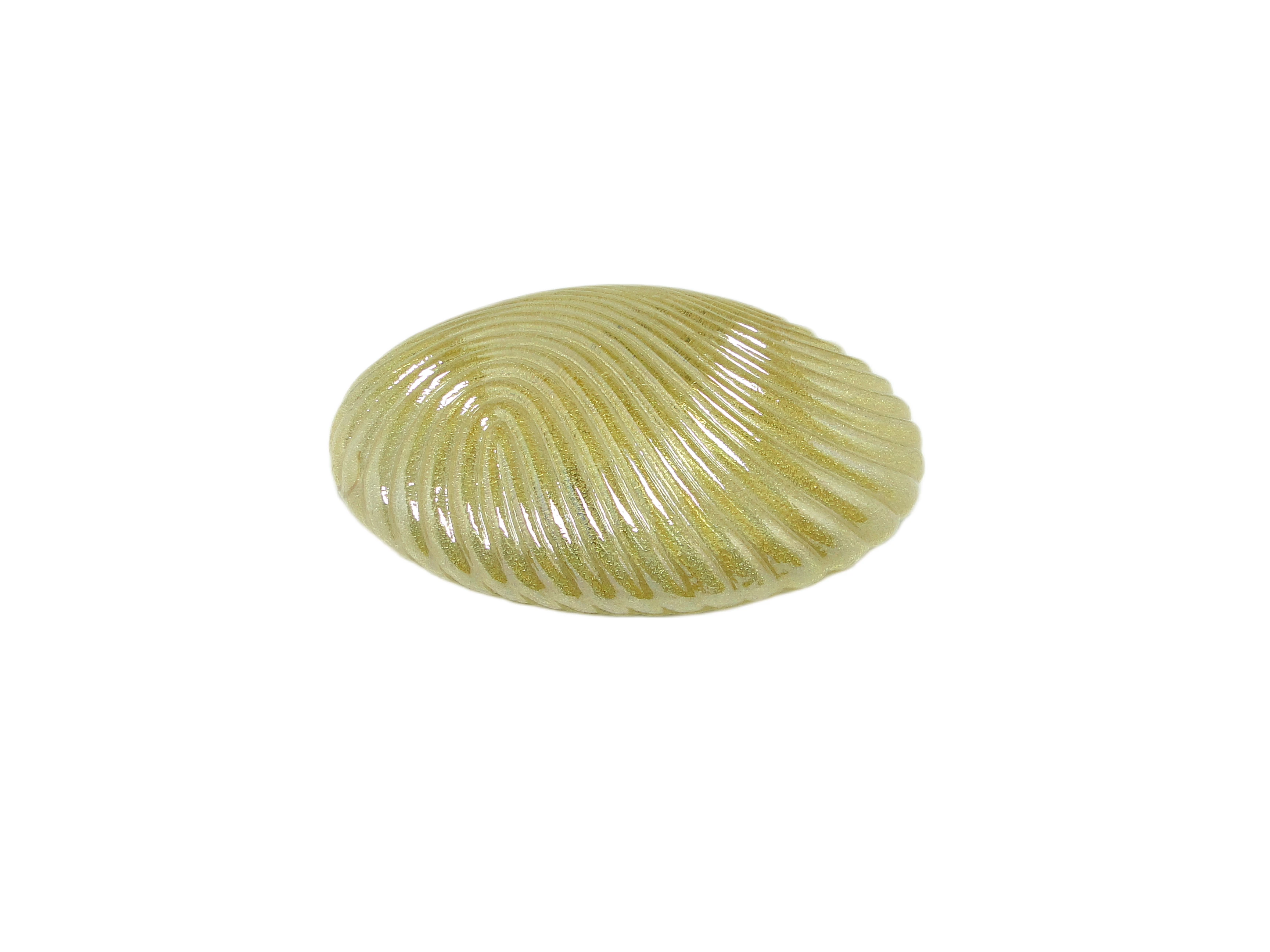 Plafon mid-century modern wyprodukowany w Belgii w latach 70. został wykonany z prasowanego szkła o ciepłym, jasnym żółtym odcieniu z subtelną złotawą poświatą. Kopułowy klosz o symetrycznej, wyważonej formie zdobi spiralny, wypukły wzór żłobień przywodzących na myśl muszle lub fale – motyw charakterystyczny dla organicznej linii wzornictwa epoki. Wykończenie szkła jest błyszczące i lekko opalizujące, co nadaje mu głębi oraz wyrazistego efektu świetlnego. Konstrukcja plafonu została zaprojektowana tak, by elementy mocujące pozostawały niewidoczne, dzięki czemu całość zachowuje jednolitą, harmonijną bryłę. Brak widocznych odprysków, pęknięć czy śladów zużycia – plafon zachowany jest w bardzo dobrym stanie, z nienaruszonym połyskiem i wyrazistymi detalami powierzchni.Forma tej lampy niesie ze sobą opowieść o latach 70. w europejskim designie: o czasie, gdy funkcjonalność łączyła się z subtelną dekoracyjnością, a projektanci szukali inspiracji w naturze i organicznych kształtach. Spiralny rytm żłobień wiruje po powierzchni szkła niczym spokojna fala, a złocisty odcień przywołuje światło letnich popołudni. Plafon zdaje się szeptać o równowadze formy i materiału, będąc przedmiotem codziennym, a zarazem nieoczywistym – jakby każdy refleks światła był tu przemyślanym akcentem.Plafon można wykorzystać zarówno jako lampę sufitową, jak i ścienną, szczególnie w salonach lub korytarzach inspirowanych stylistyką mid-century modern oraz w eklektycznych, kolekcjonerskich aranżacjach. Dobrze sprawdzi się w zestawieniu z meblami o zaokrąglonych krawędziach, tekstyliami w tonacjach ochry i złota, a także w pobliżu luster lub dekoracyjnych dodatków z epoki. Można go połączyć z prostymi, drewnianymi akcentami lub szkłem w kontrastującym kolorze, by podkreślić organiczny charakter klosza i wprowadzić subtelny rytm światła do wnętrza.