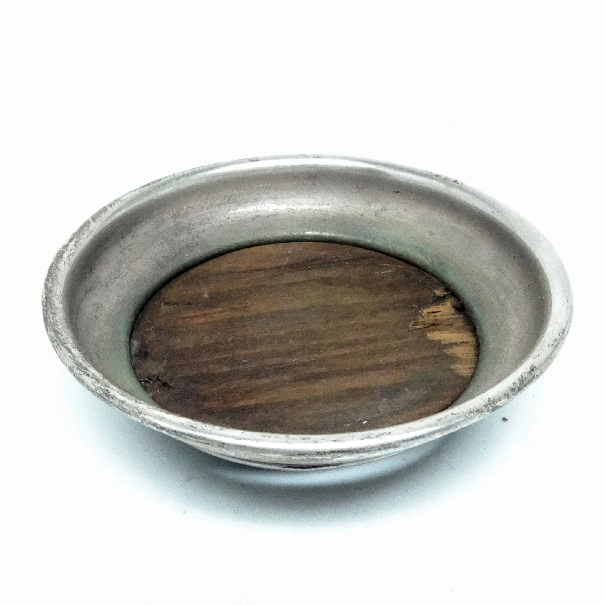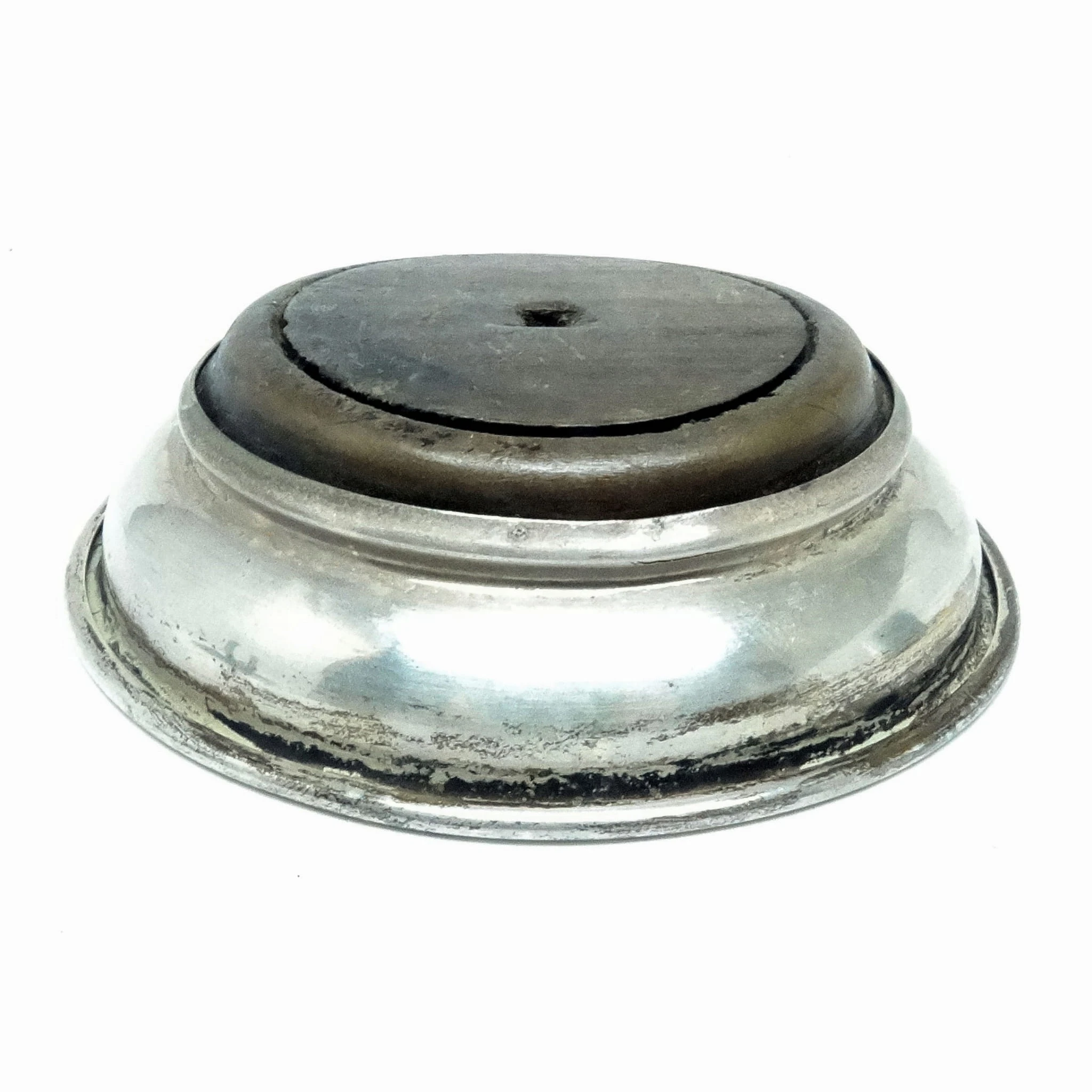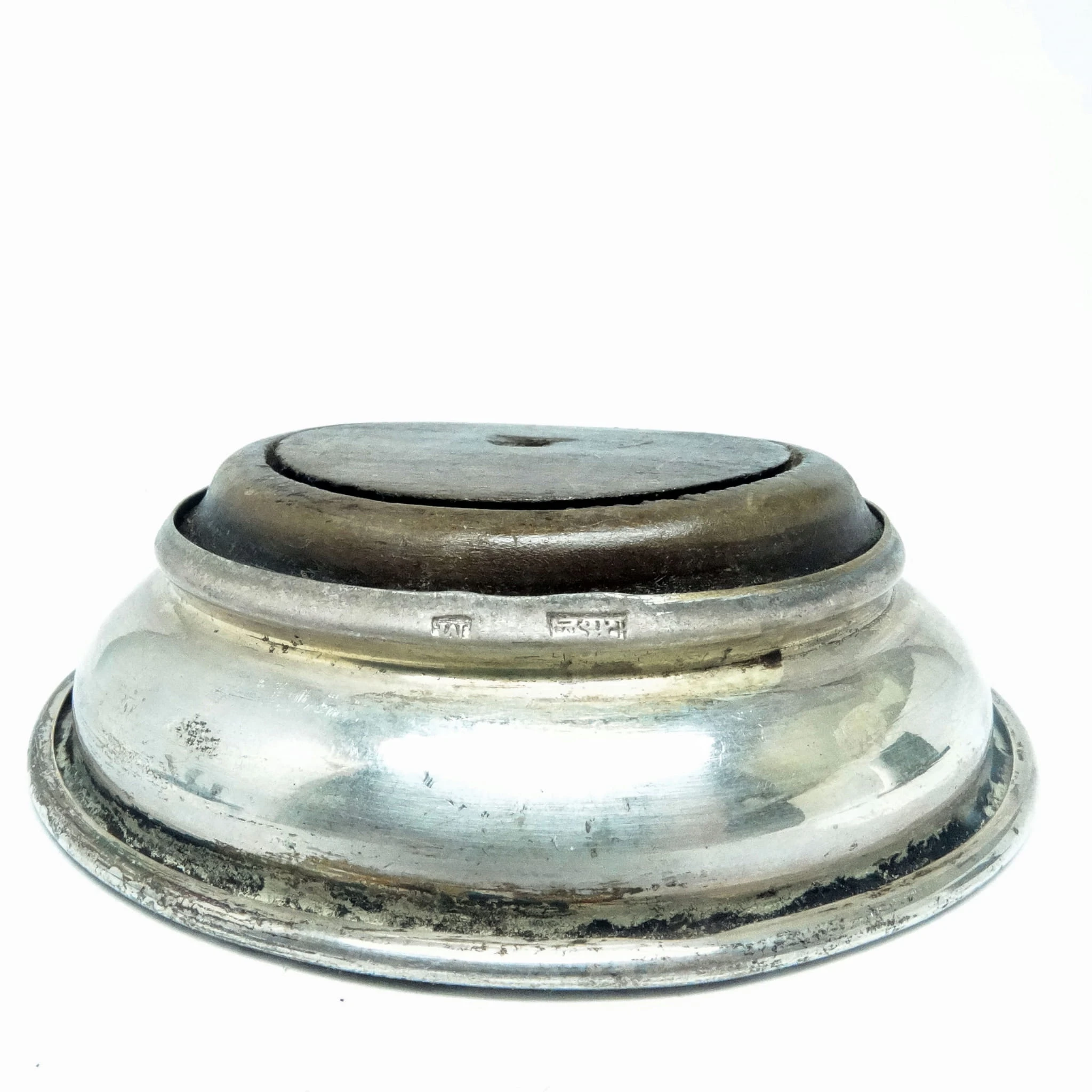 Podstawka pochodzi z okresu 1880-1895 i została wyprodukowana przez wytwórnię Plewkiewicz w Warszawie (Oznaczenie PiSka to skrót od Plewkiewicz i Spółka. Nabijane było na małych powierzchniach gdzie nie dało się zmieścić elipsy z sygnaturą) . Nosi wyraźne ślady użytkowania w postaci odkształconego wkładu drewnianego.