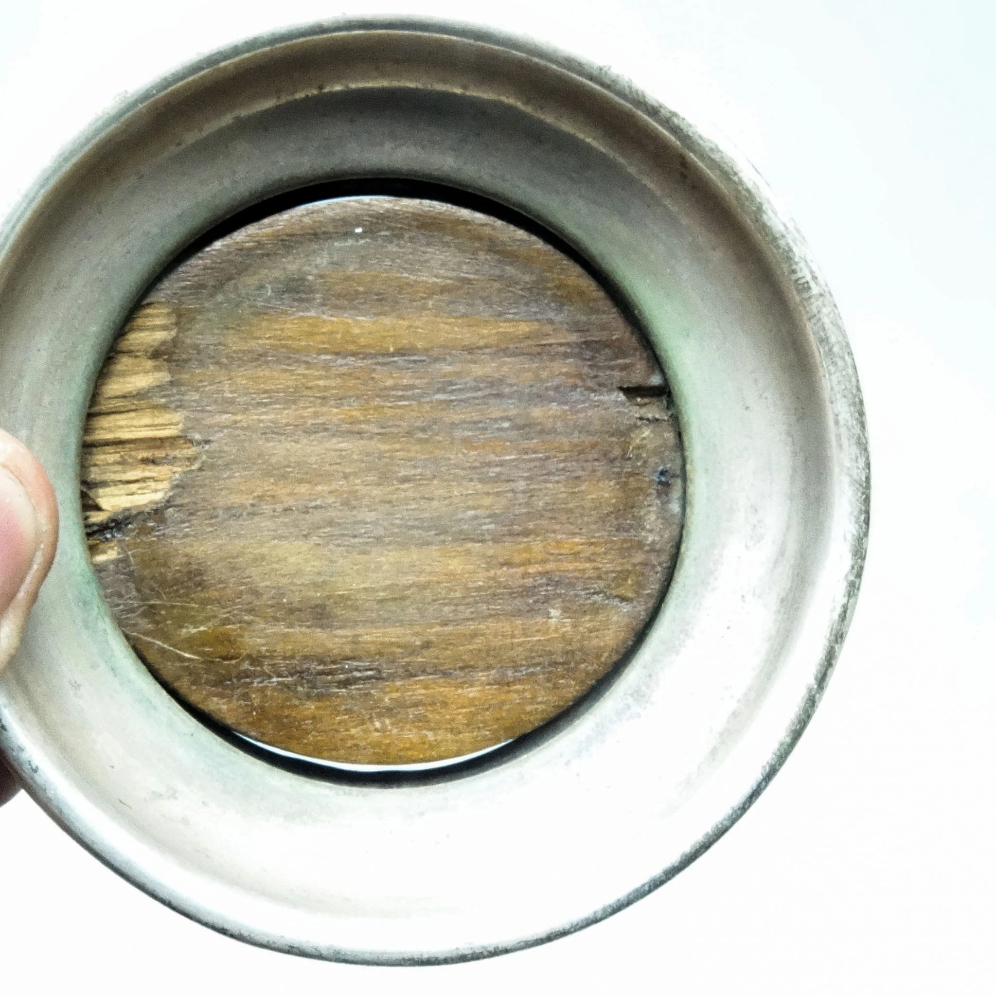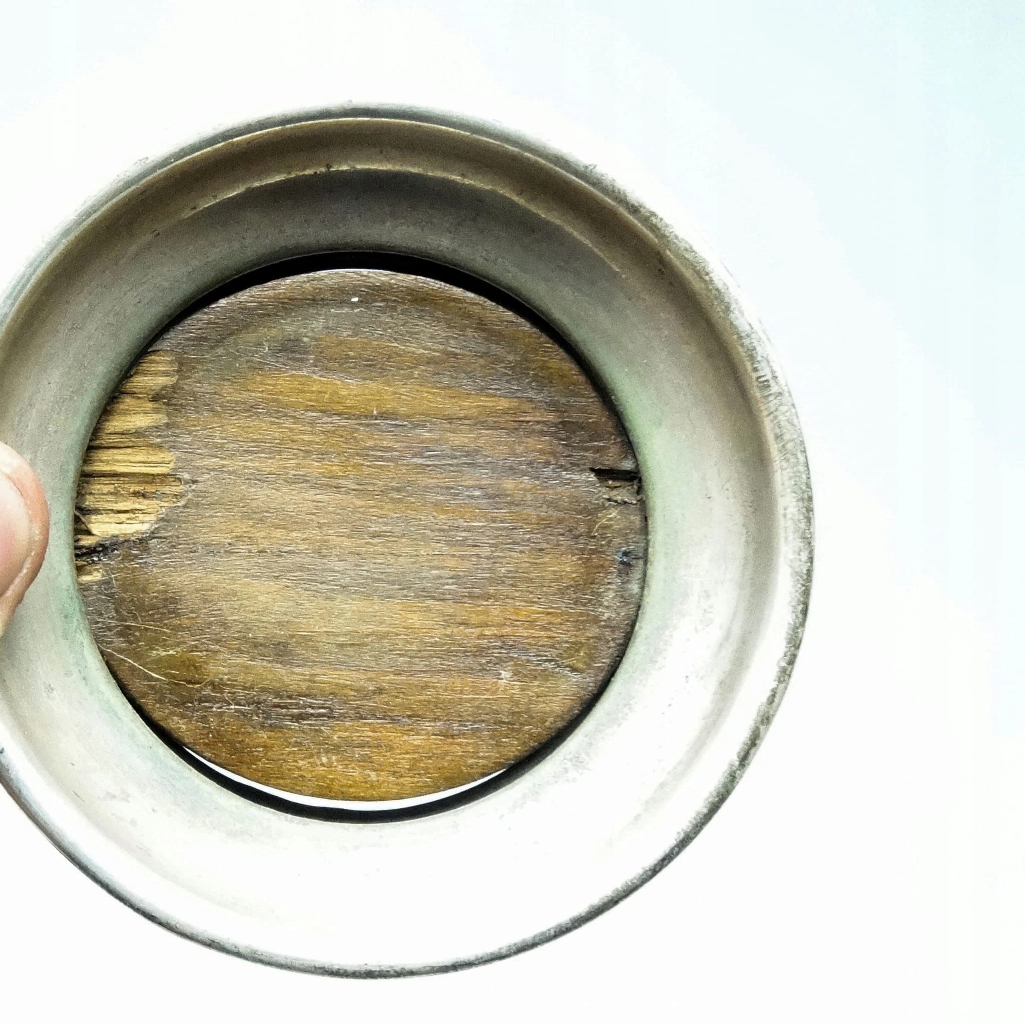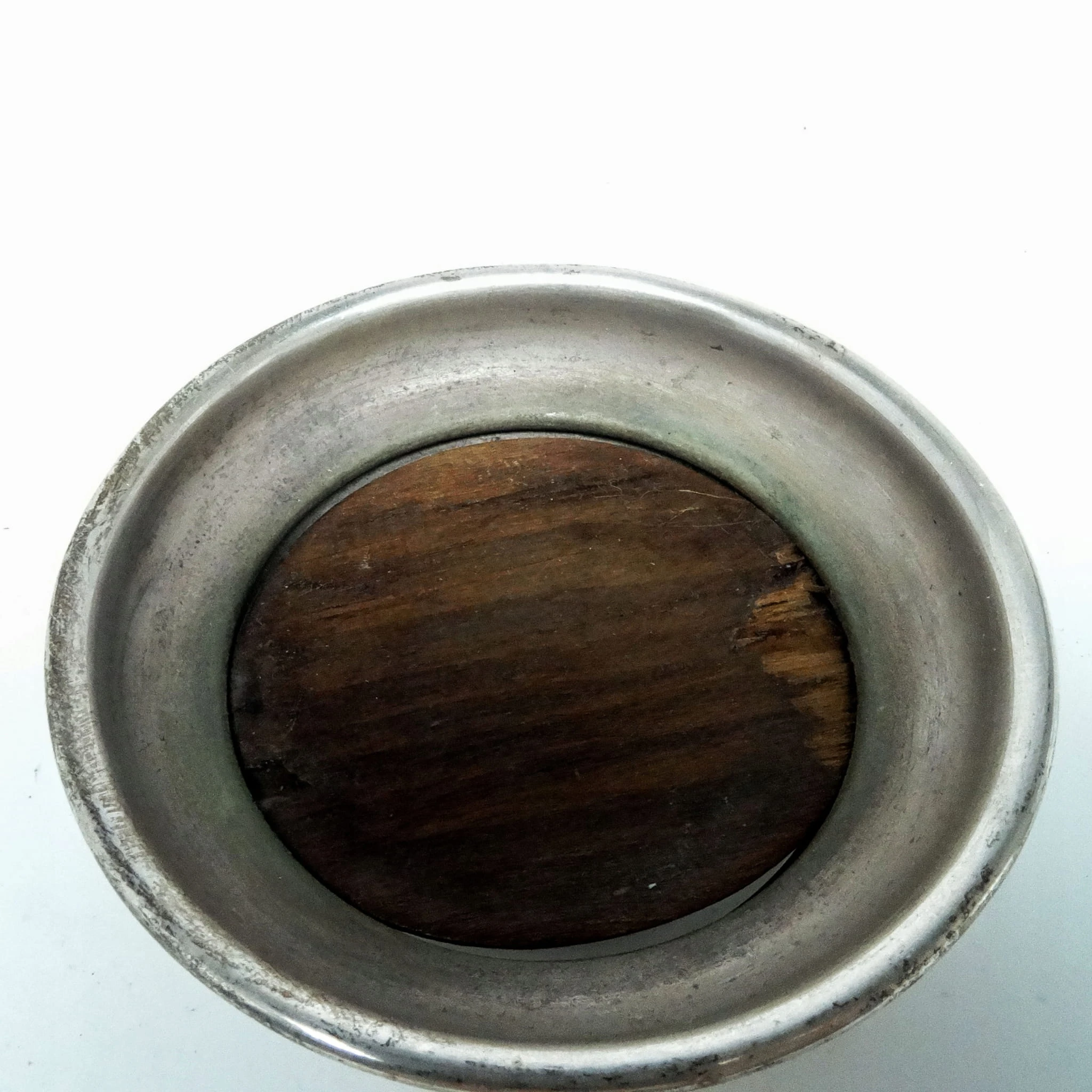 Podstawka pochodzi z okresu 1880-1895 i została wyprodukowana przez wytwórnię Plewkiewicz w Warszawie (Oznaczenie PiSka to skrót od Plewkiewicz i Spółka. Nabijane było na małych powierzchniach gdzie nie dało się zmieścić elipsy z sygnaturą) . Nosi wyraźne ślady użytkowania w postaci odkształconego wkładu drewnianego.