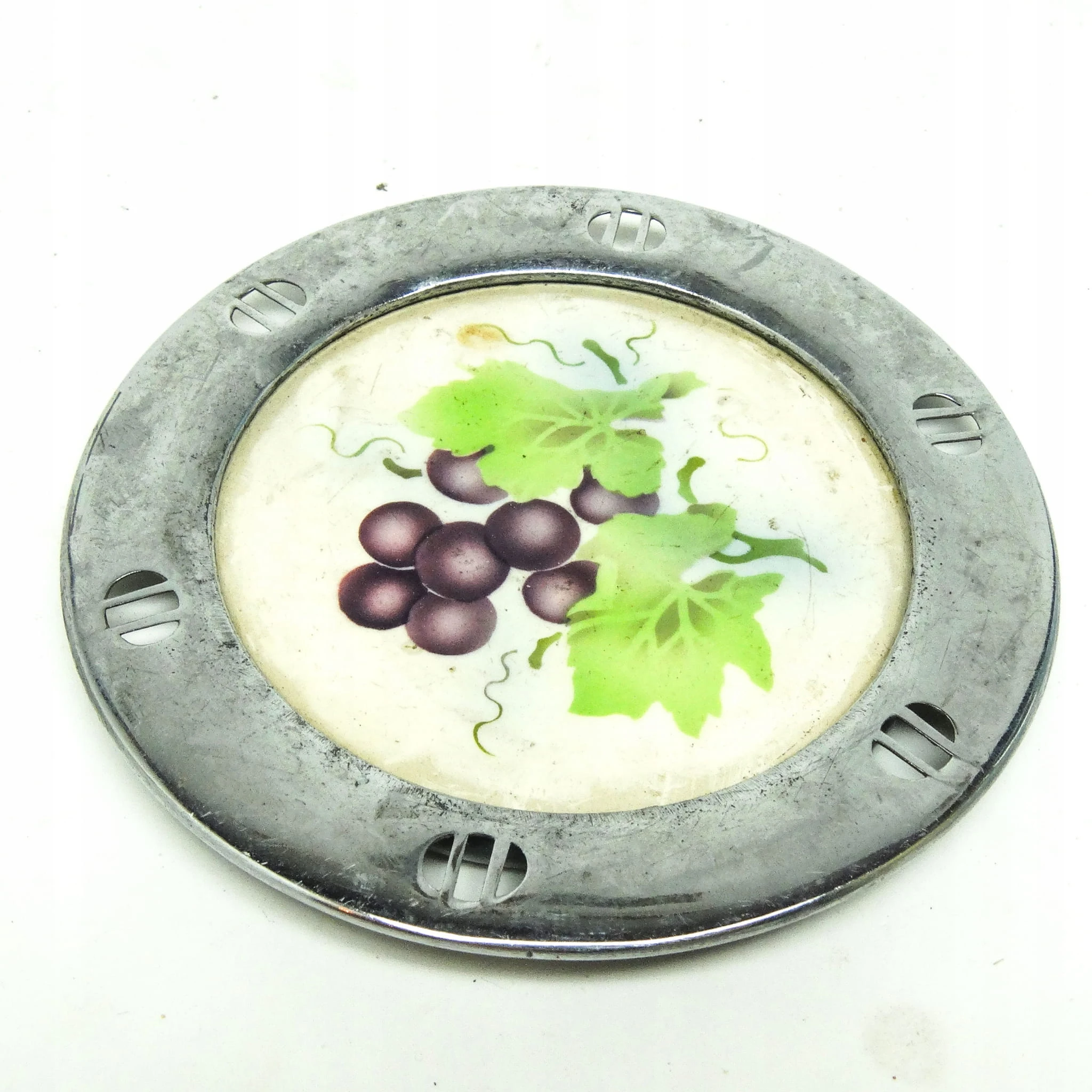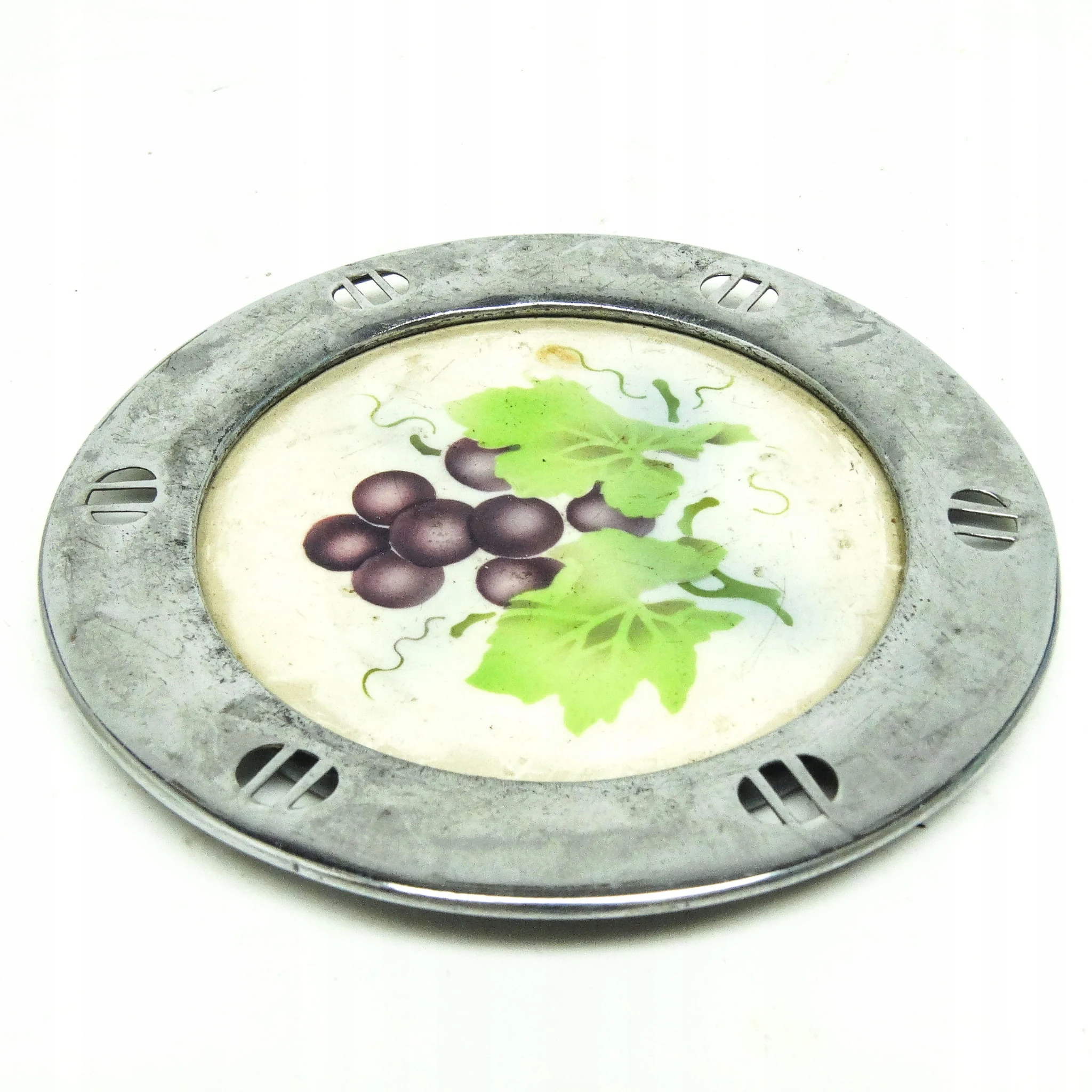 Podstawka pod butelkę wykonana została z platerowanego mosiądzu w wytwórni we Wiedniu około 1920 roku. Są wykonane w stylu secesyjne. Stan jest dobry.