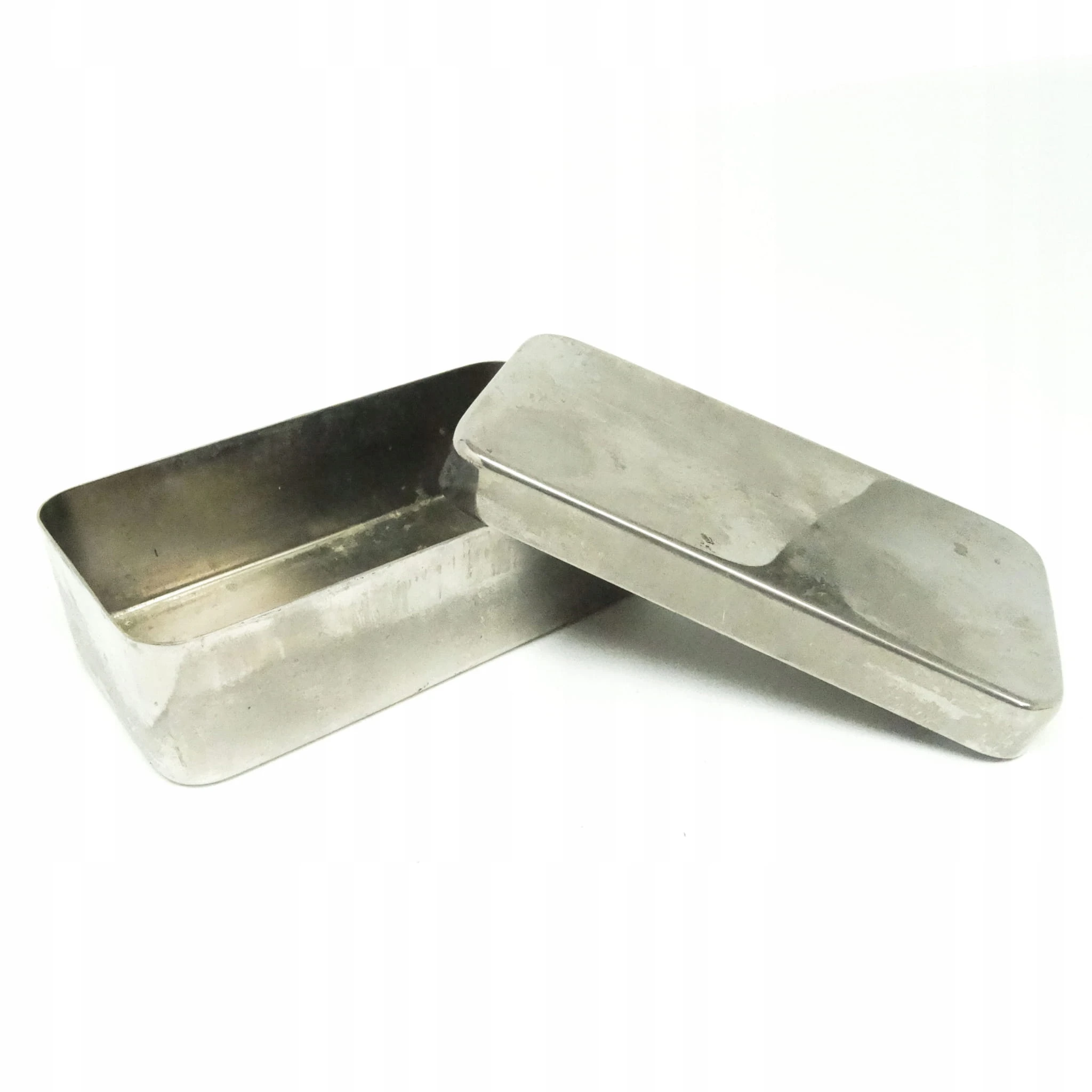 Pojemnik został wyprodukowany w Polsce w latach 50. Wykonany z mosiądzu chromowanego. Zachowany jest w dobrym stanie.