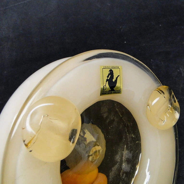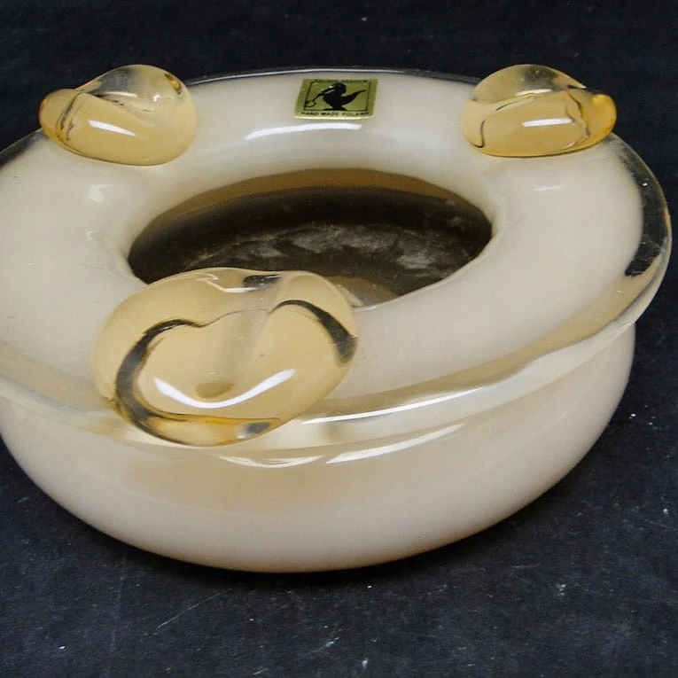 Popielniczka wykonana dla Krakowskiego Instytutu Szkła, w latach 70. Jest projektu Franciszka Bieli. Zachowana jest w bardzo dobrym stanie.