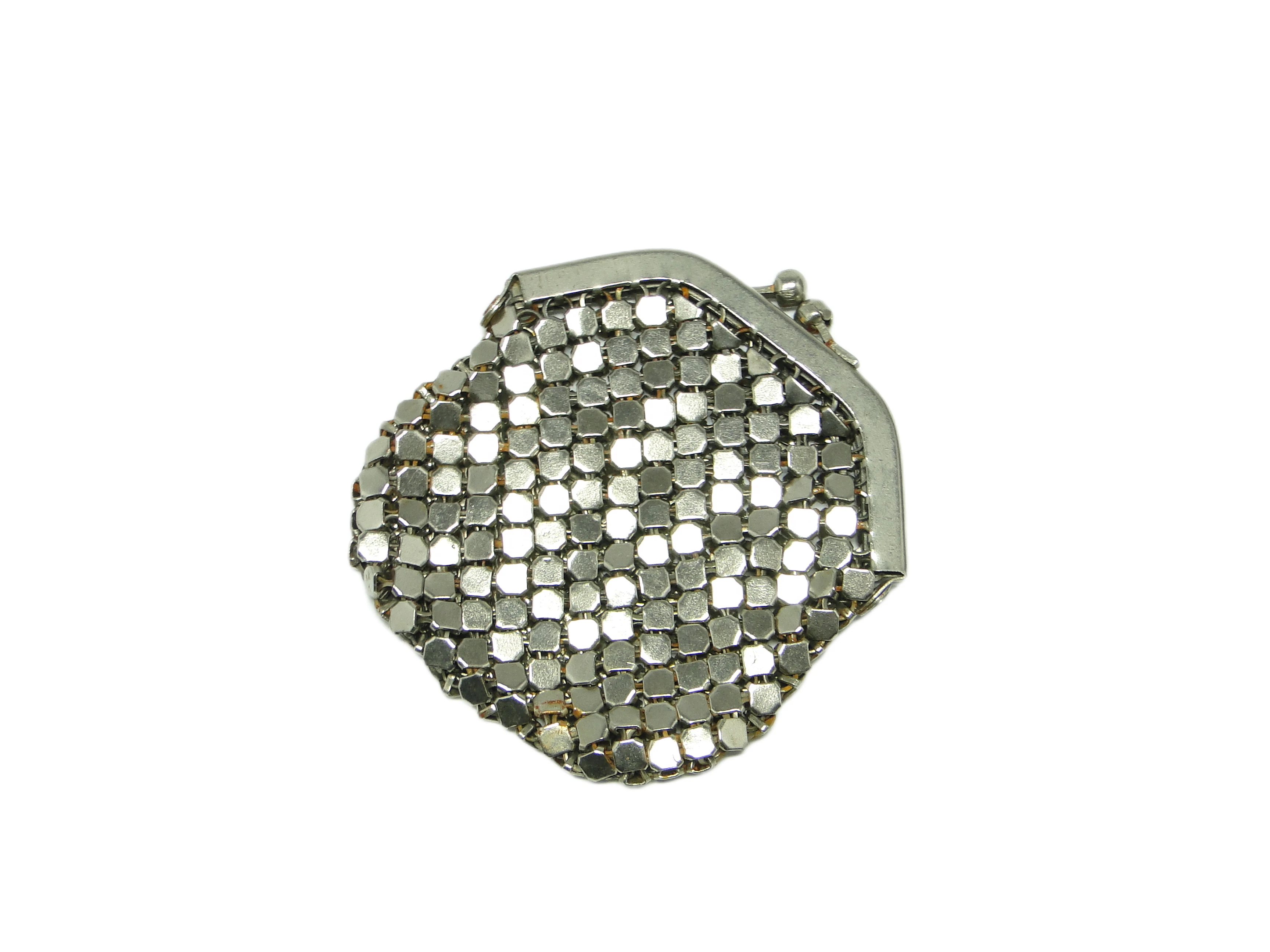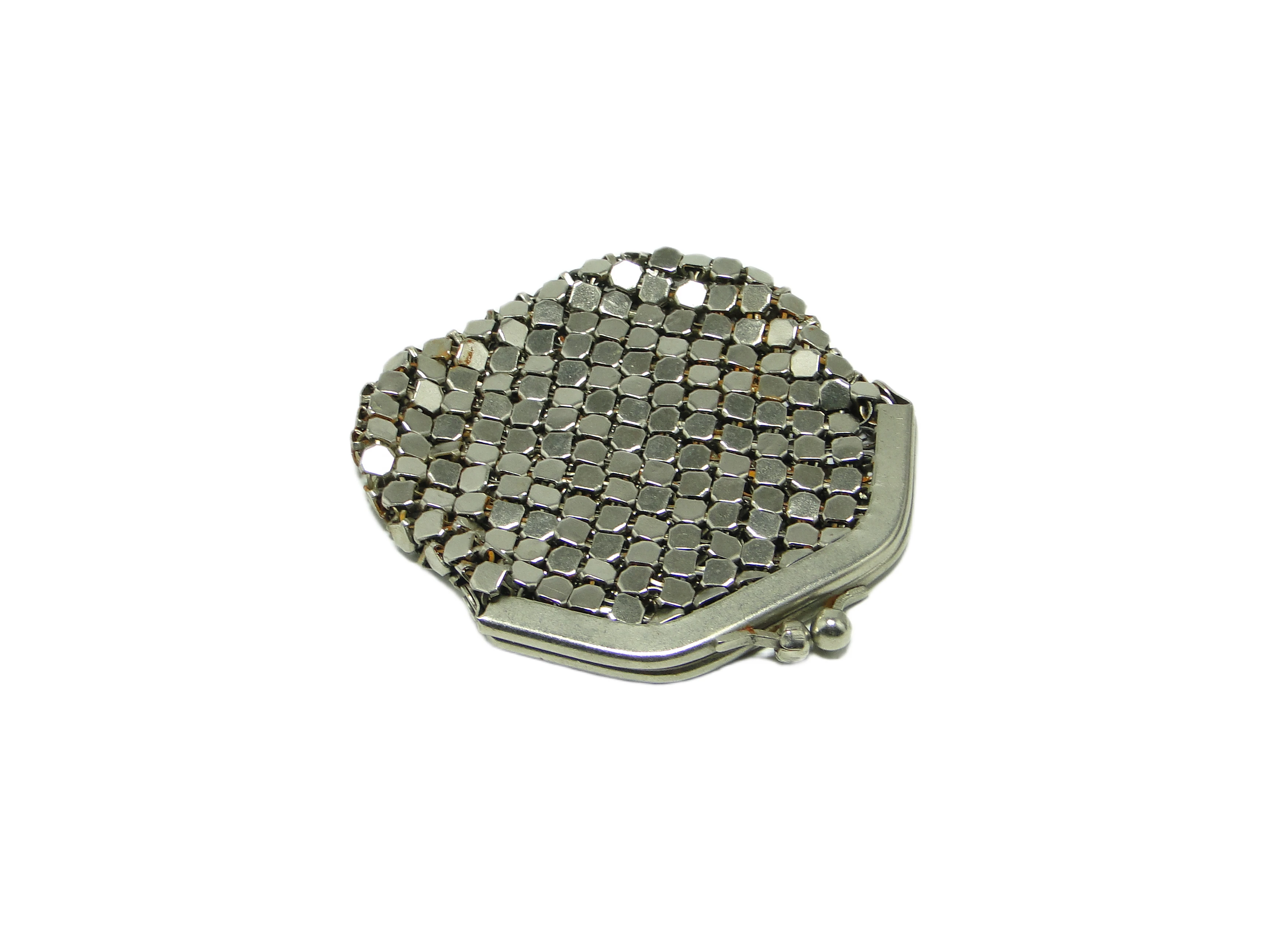 Portmonetka z lat 50., wykonana w Polsce, reprezentuje styl art déco poprzez siateczkową konstrukcję złożoną z niewielkich, kwadratowych płytek z mosiądzu pokrytego srebrem. Każdy element jest starannie spasowany, tworząc geometryczny, symetryczny wzór o lustrzanym, chłodnym odcieniu srebra. Ramka oraz klasyczne zapięcie kulkowe zostały wykończone w identycznym, gładkim tonie, podkreślając jednolitą, metaliczną prezencję portmonetki. Miękko zaokrąglona forma oraz elastyczna struktura siateczki sprawiają, że całość zachowuje zarówno praktyczność, jak i dekoracyjność. Precyzja wykonania widoczna jest w dokładnych połączeniach i solidnym osadzeniu w ramie. Portmonetka zachowana w bardzo dobrym stanie – bez śladów zmatowień czy uszkodzeń, co potwierdza dbałość o przedmiot przez lata.W tej portmonetce wybrzmiewa głos powojennej Polski, kiedy ideały art déco przenikały do codzienności. Metaliczna siateczka odbija światło niczym szklane witryny wielkomiejskich ulic, a chłodna gładkość srebrzonego mosiądzu niesie opowieść o poszukiwaniu elegancji w skromnych realiach lat 50. Każdy błysk geometrycznej powierzchni zdaje się być echem ulicznych lamp, wspomnieniem o miejskim życiu w epoce, w której nawet drobne przedmioty miały ambicję dekoracyjnego wyrazu.Portmonetka może zostać wyeksponowana na toaletce w sypialni, w otoczeniu lustrzanych szkatułek lub porcelanowych bibelotów, podkreślając kolekcjonerski charakter przestrzeni. Dobrze współgra z elementami art déco, ale również z minimalistycznymi dekoracjami: kontrastujące szkło lub czarny marmur wprowadzą historyczny akcent do nowoczesnego wnętrza. Warto połączyć ją z innymi metalicznymi dodatkami, by uzyskać spójną, wyważoną kompozycję o subtelnie nostalgicznym tonie.