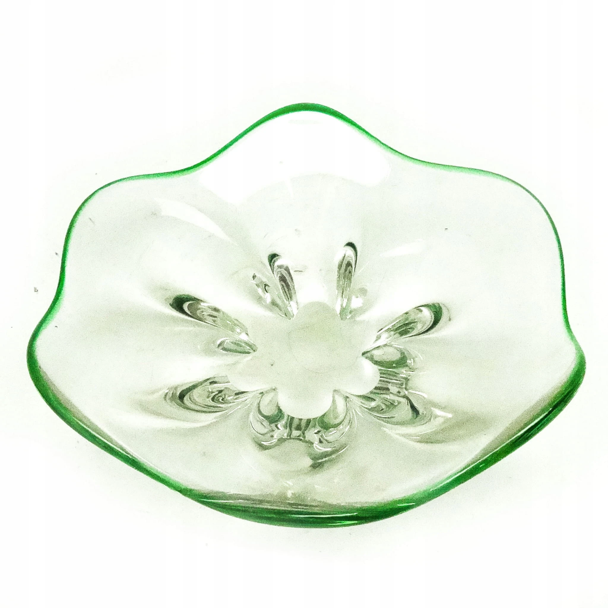 szkło bezbarwne profilowane, dekorowane trzema aplikacjami z zielonego szkła