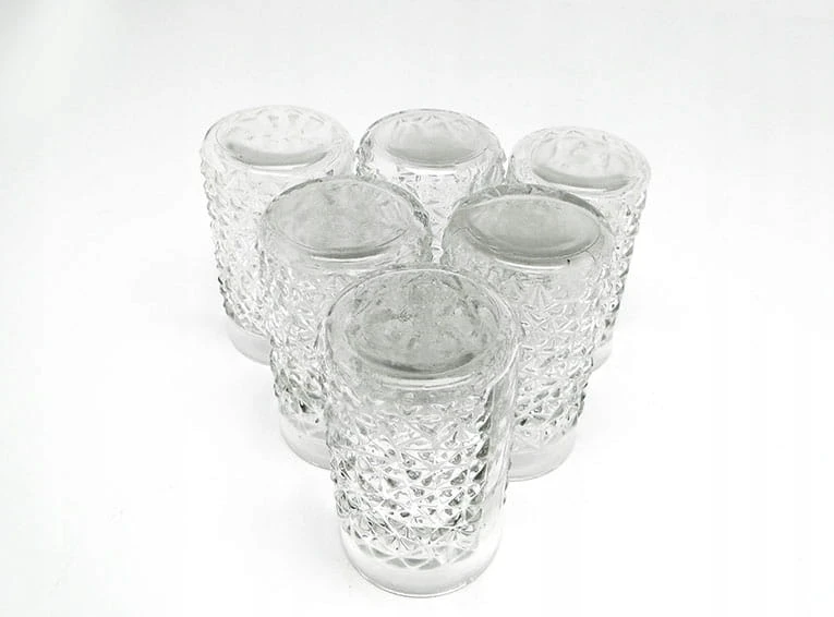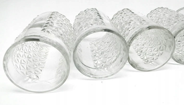Kieliszki do wódki wykonane ze szkła lanego i formowanego.