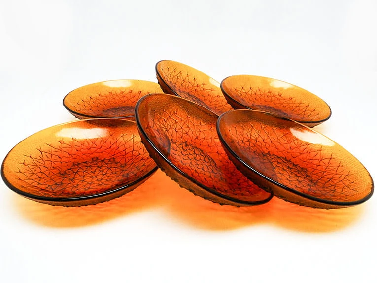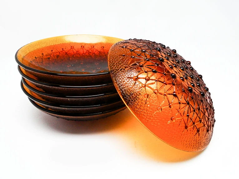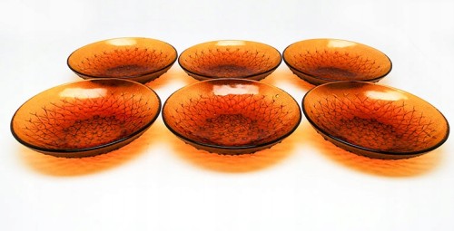 Talerzyki do deserów wykonane ze szkła lanego i formowanego.