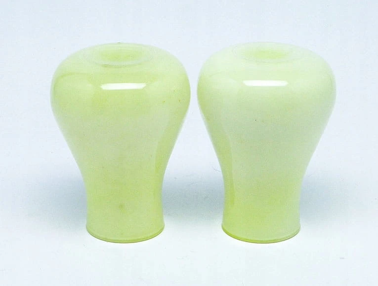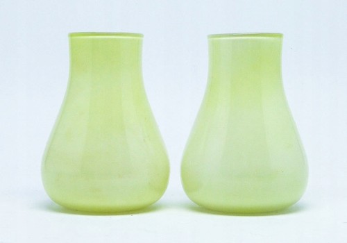 Para seledynowych wazonów ze szkła dwuwarstwowego wykonanych w stylu NEW LOOK.