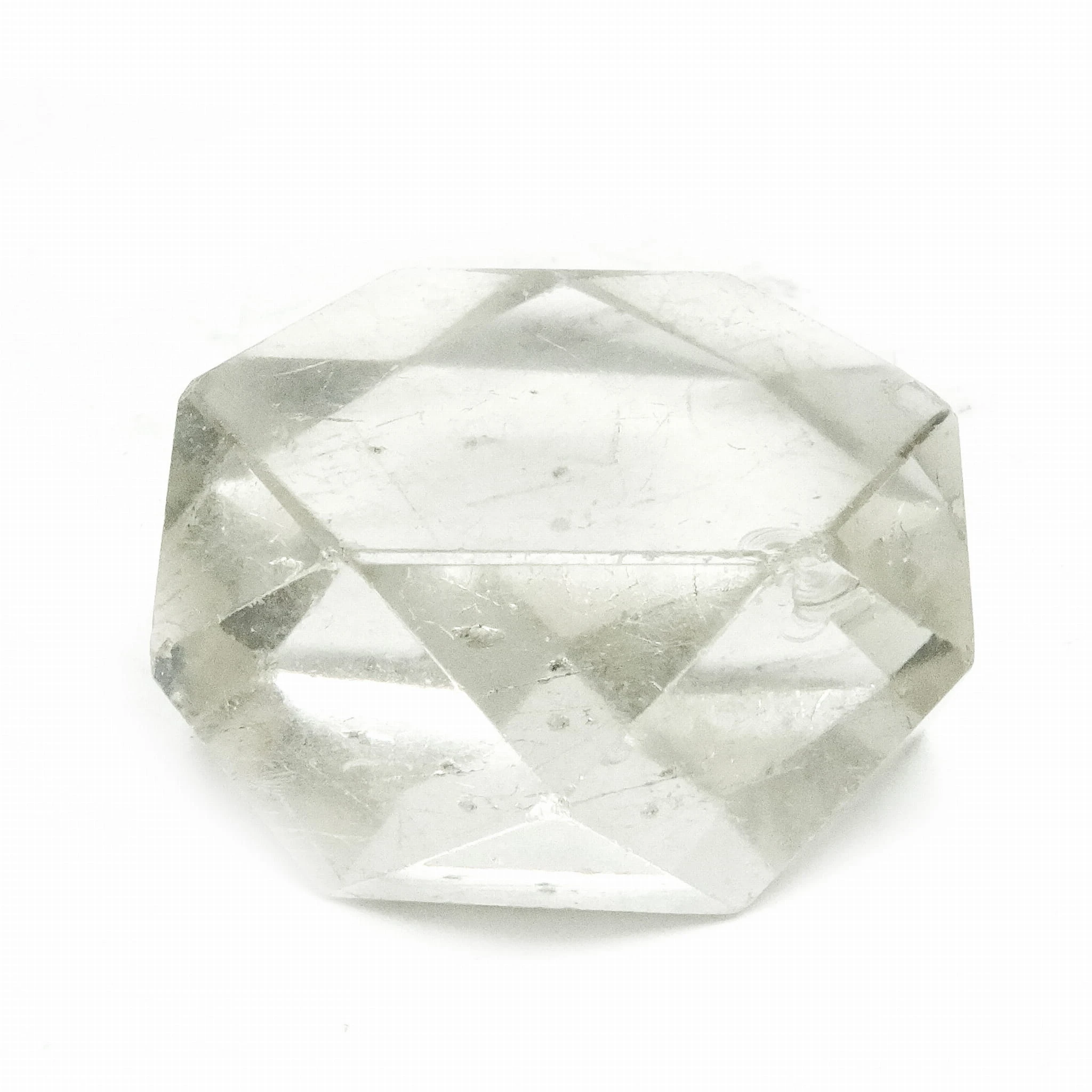 Przycisk do papieru wyprodukowany został w Niemczech około 1950. Powierzchnia jest wykonana ze szkła fasetowanego. Zachowany jest w dobrym stanie.