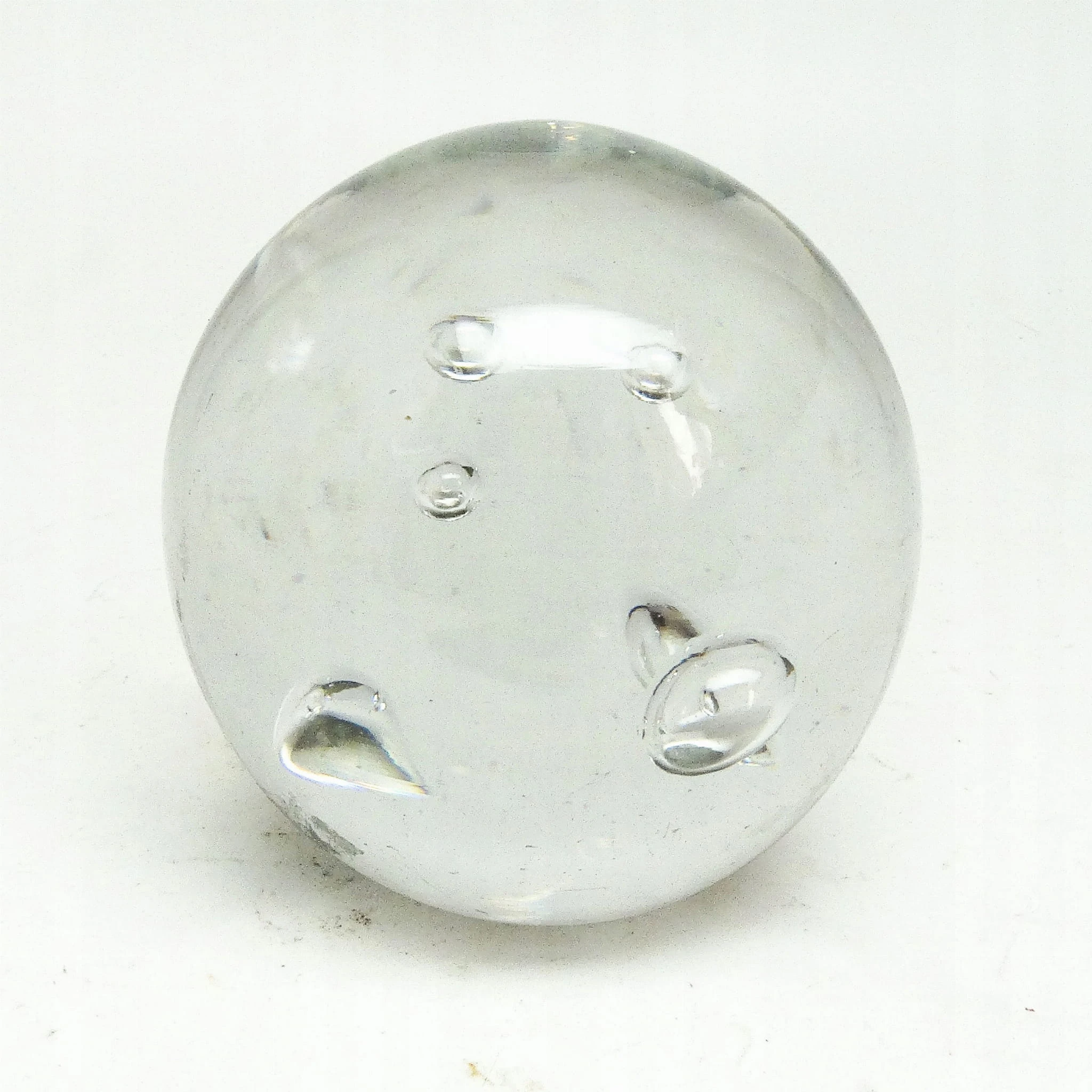 Przycisk do papieru wyprodukowany został w Niemczech około 1950. Powierzchnia jest wykonana ze szkła. Zachowany jest w bardzo dobrym stanie.