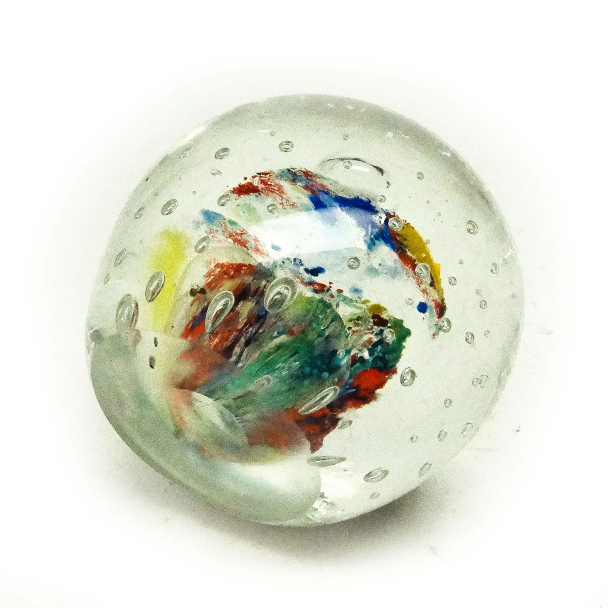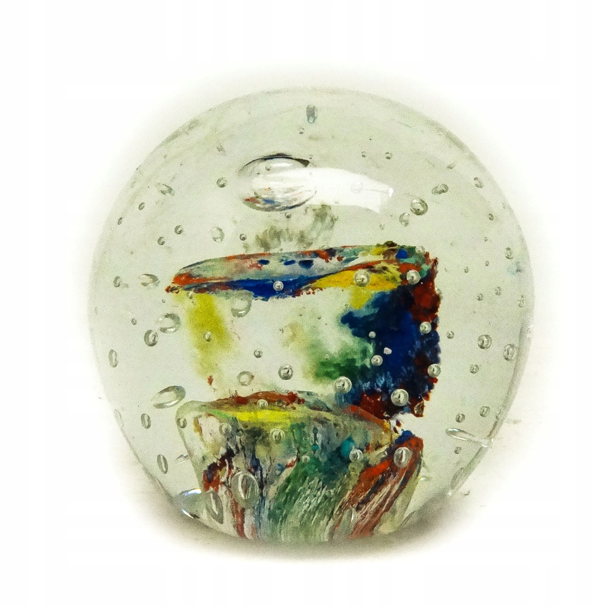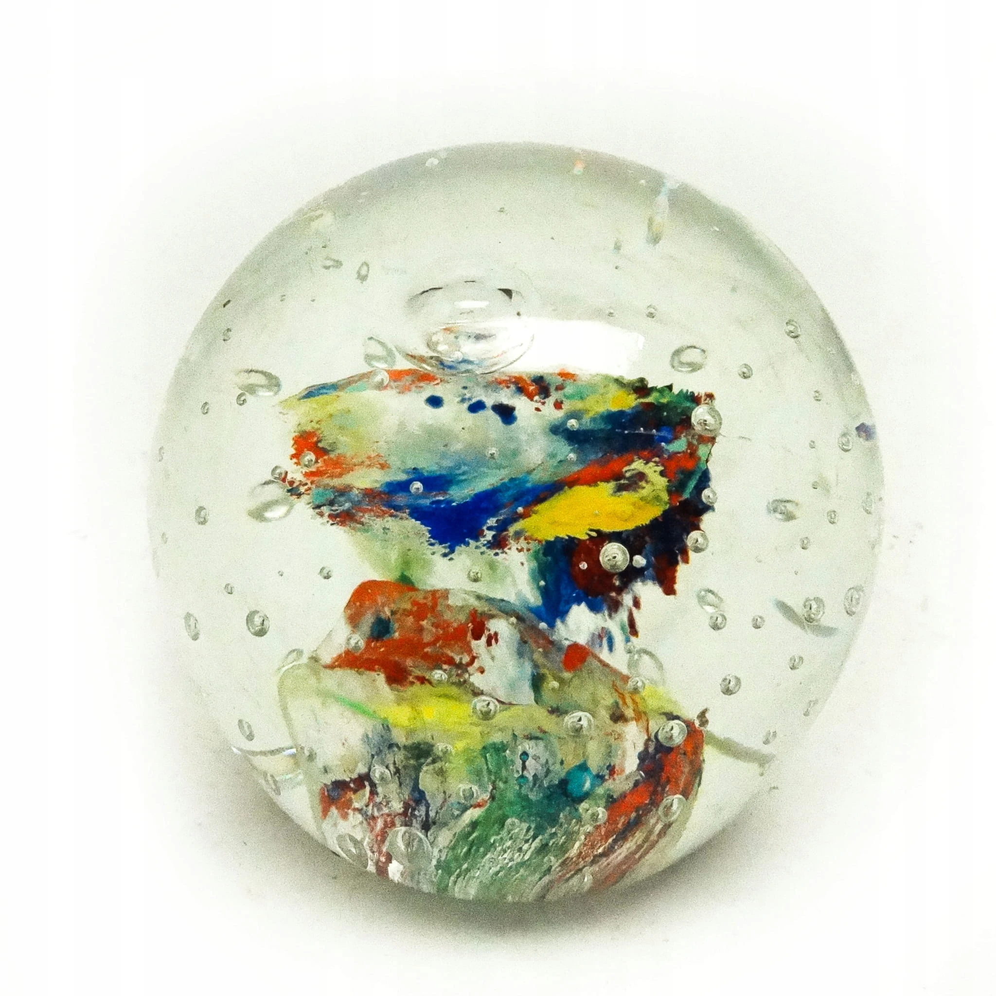 Przycisk do papieru wyprodukowany został w Niemczech około 1950 roku. Powierzchnia jest wykonana ze szkła. Zachowany jest w bardzo dobrym stanie.