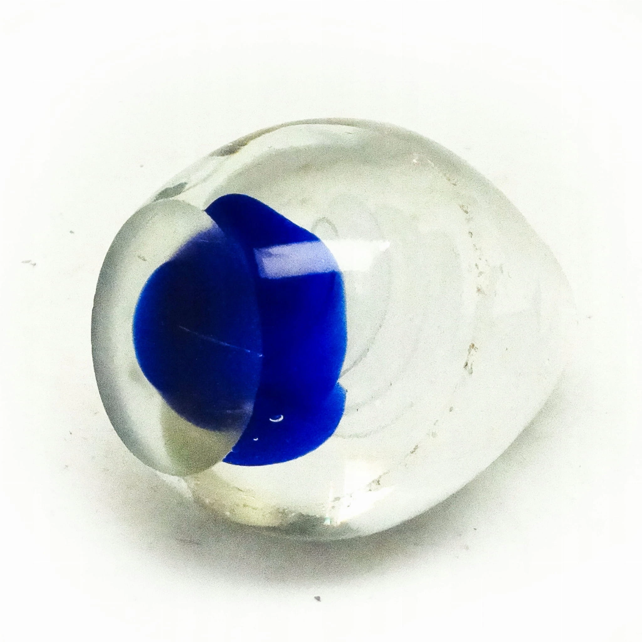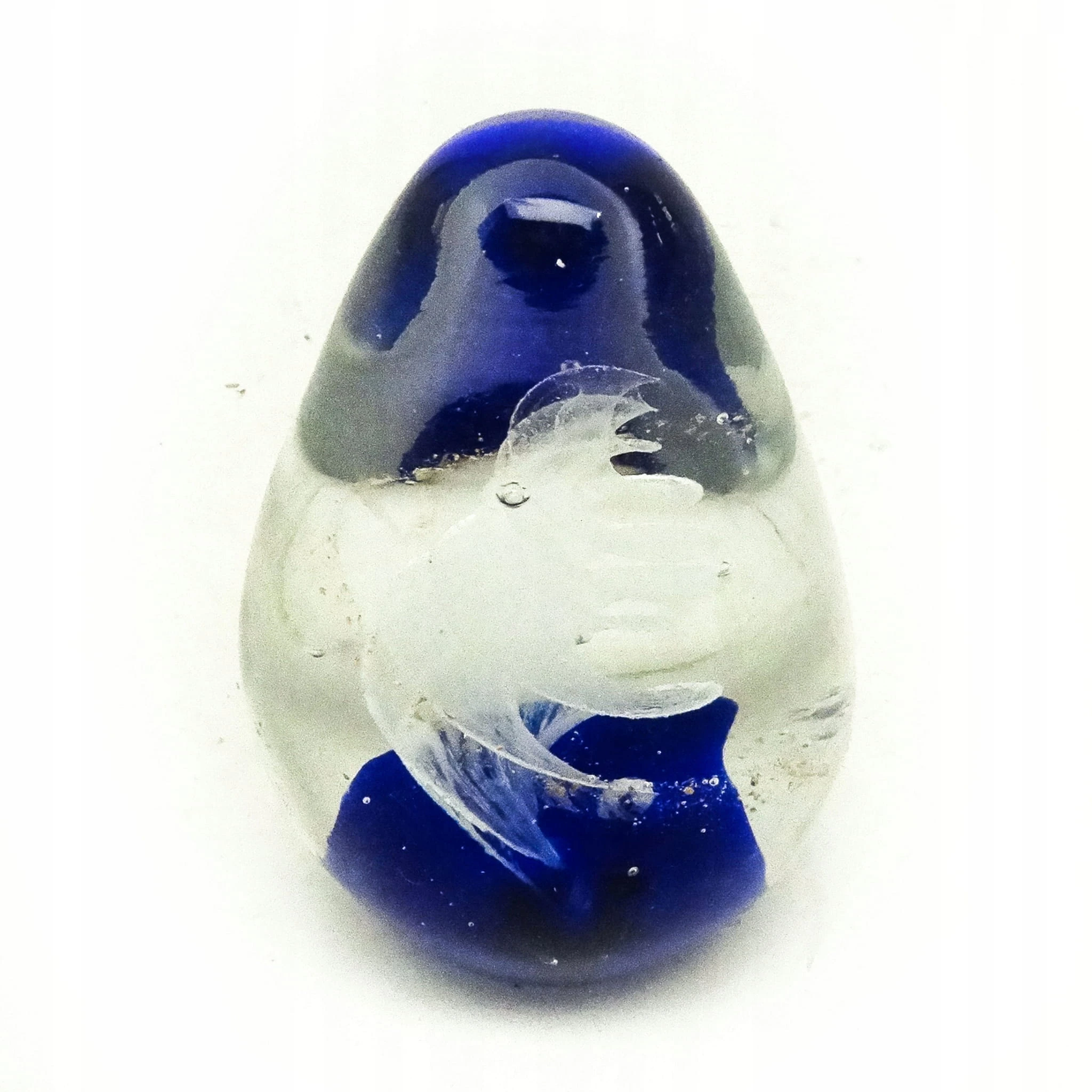 Przycisk do papieru wyprodukowany został w Niemczech około 1950 roku. Powierzchnia jest wykonana ze szkła. Zachowany jest w bardzo dobrym stanie.