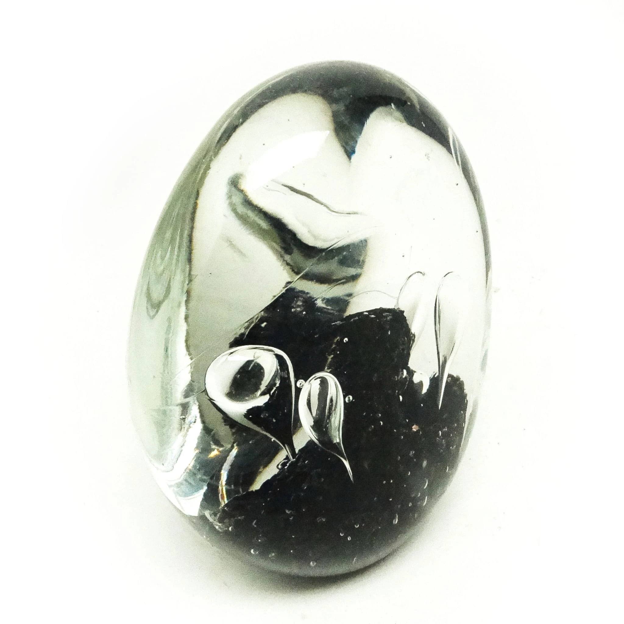 Przycisk do papieru wyprodukowany został w Niemczech około 1950 roku. Powierzchnia jest wykonana ze szkła. Zachowany jest w bardzo dobrym stanie.