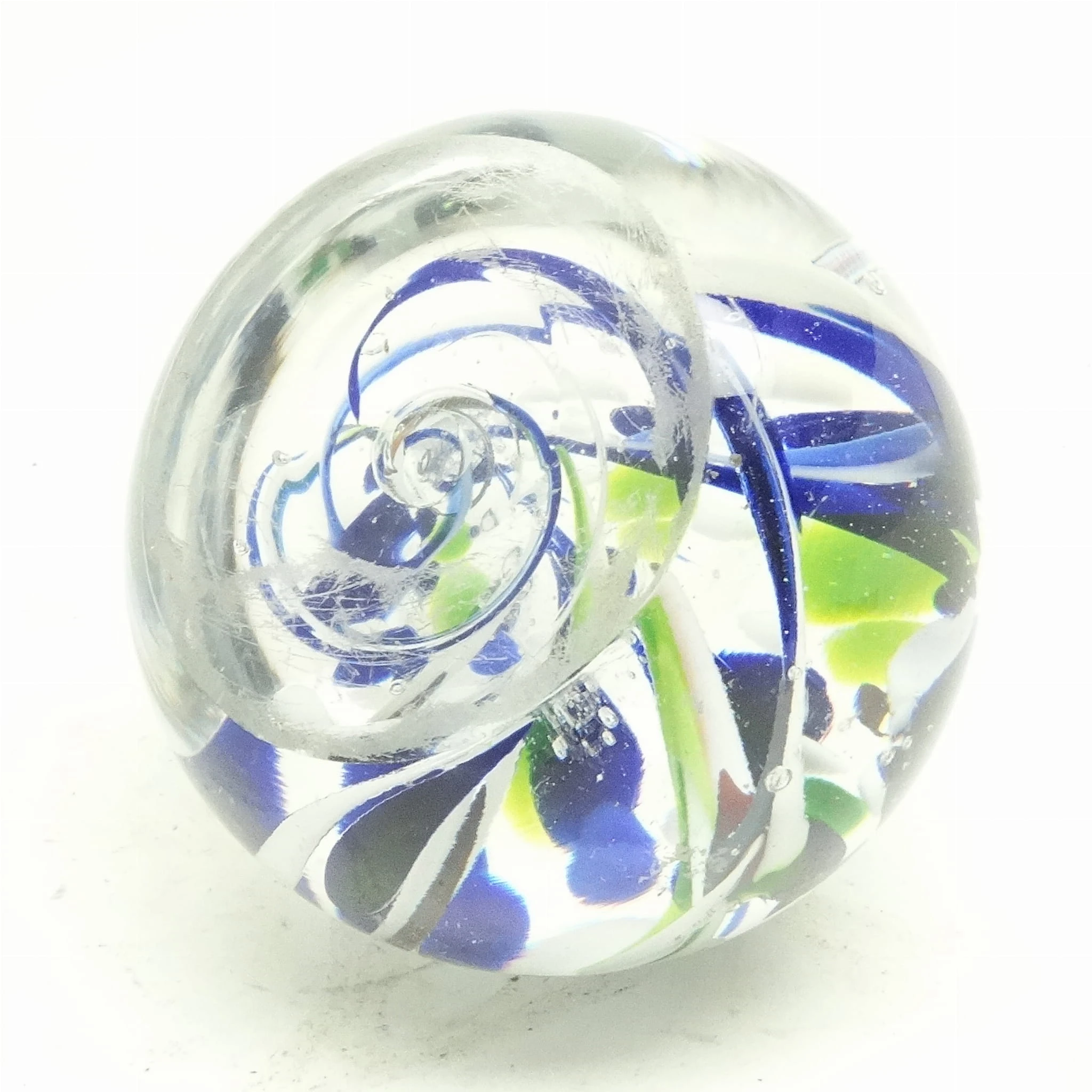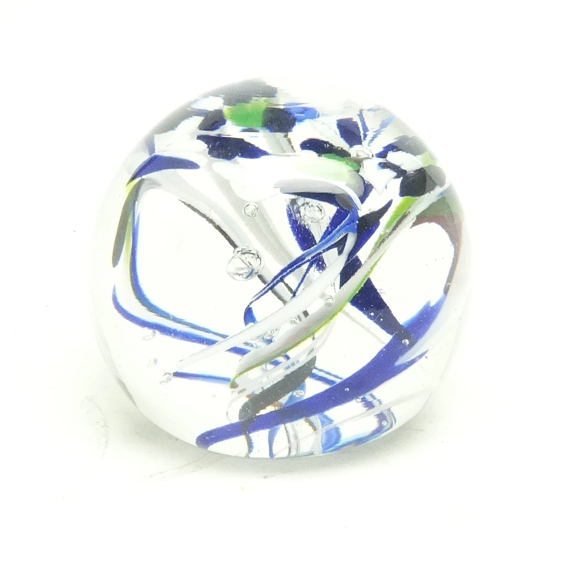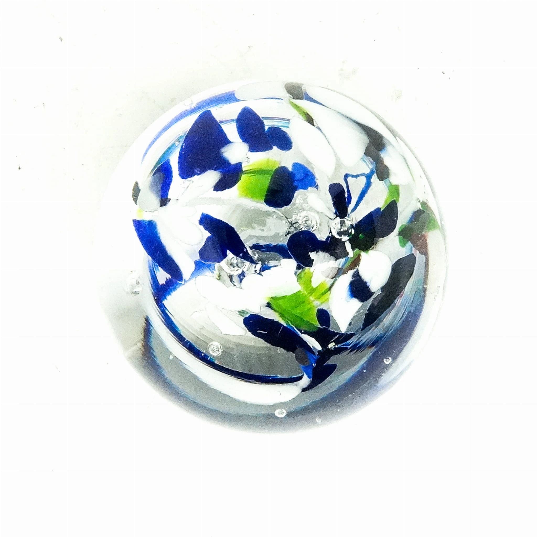 Przycisk do papieru wyprodukowany został w Czechosłowacji około 1950. Powierzchnia jest wykonana ze szkła. Zachowany jest w bardzo dobrym stanie.