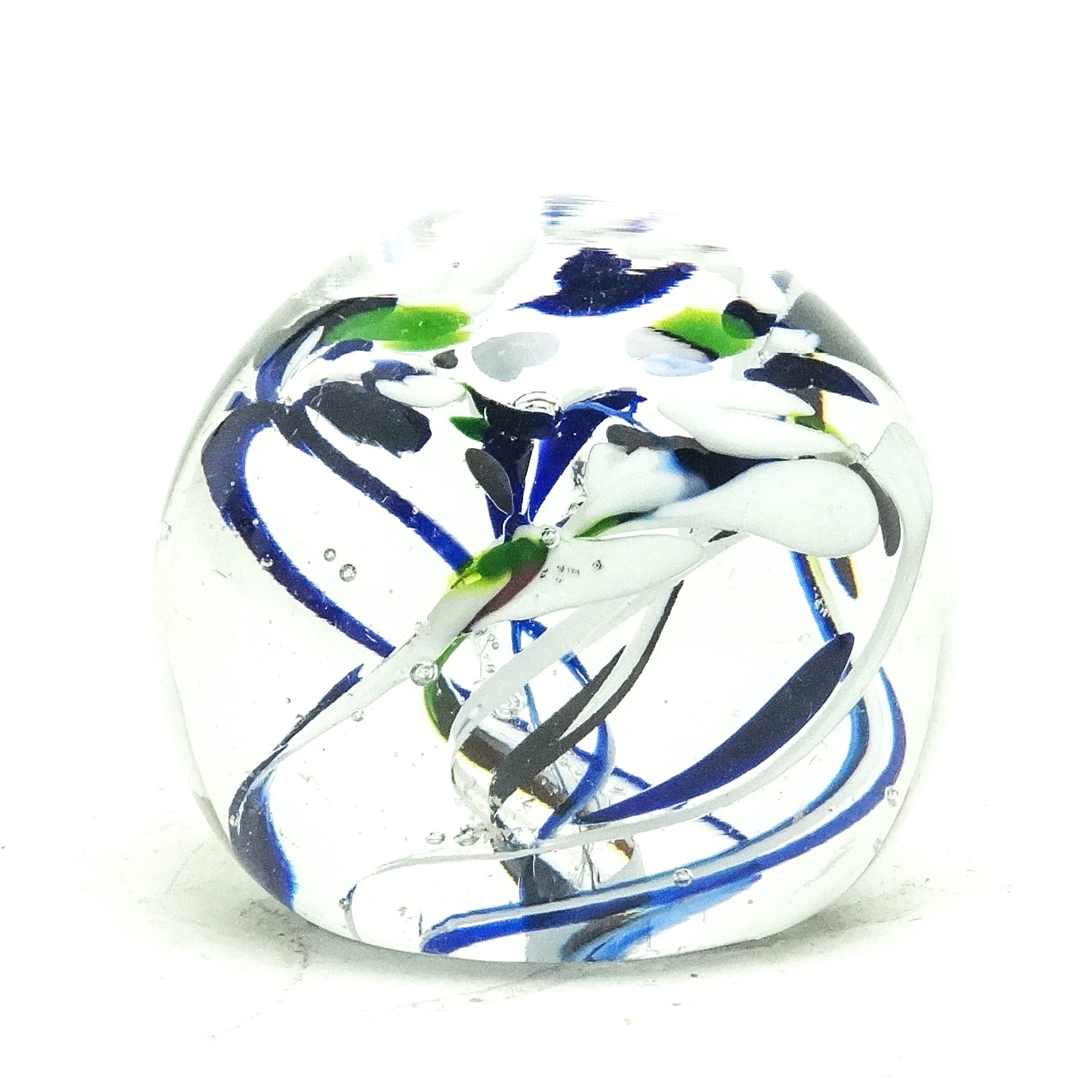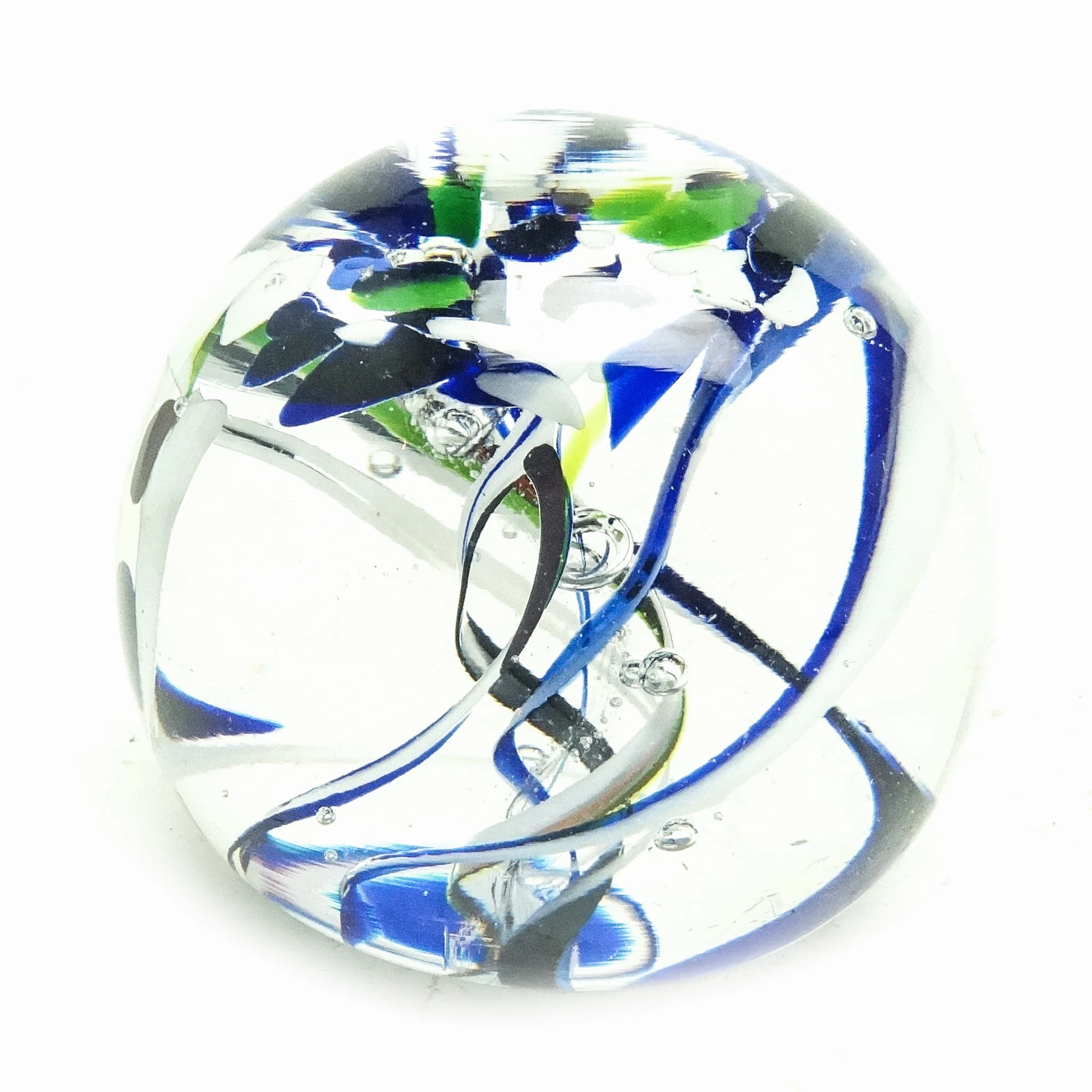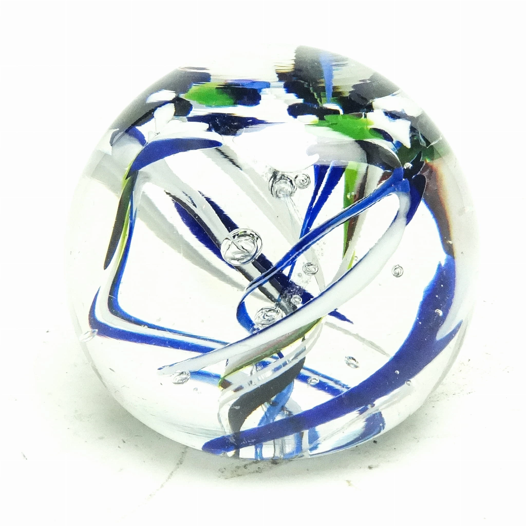 Przycisk do papieru wyprodukowany został w Czechosłowacji około 1950. Powierzchnia jest wykonana ze szkła. Zachowany jest w bardzo dobrym stanie.