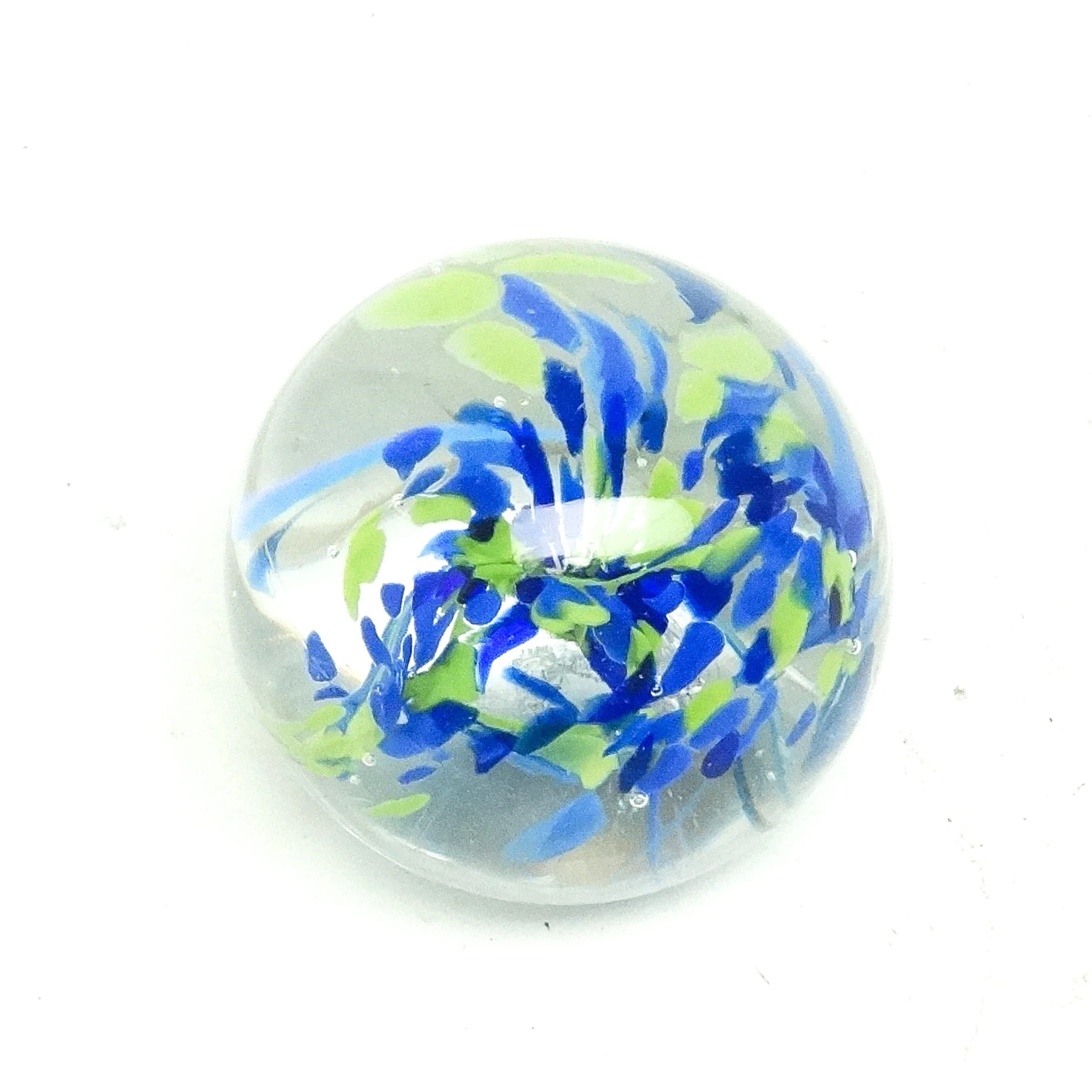 Przycisk do papieru wyprodukowany został w Czechosłowacji około 1950. Powierzchnia jest wykonana ze szkła. Zachowany jest w bardzo dobrym stanie.