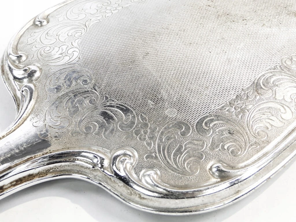 Lustro wyprodukowane z mosiądzu platerowanego. Zachowane jest w dobrym stanie, nie było do tej pory posrebrzane wtórnie, ani poddawane żadnym naprawom. Jest w stanie niezmienionym od momentu produkcji. Nosi ślady użytkowania.