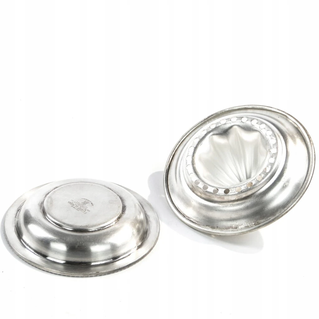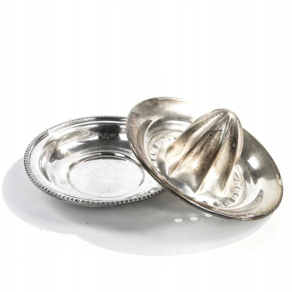 Wyciskarka wyprodukowana z mosiądzu platerowanego. Zachowana jest w dobrym stanie, nie było do tej pory posrebrzane wtórnie, ani poddawane żadnym naprawom. Jest w stanie niezmienionym od momentu produkcji. Stan dobry. Podstawka dodana jest gratis.