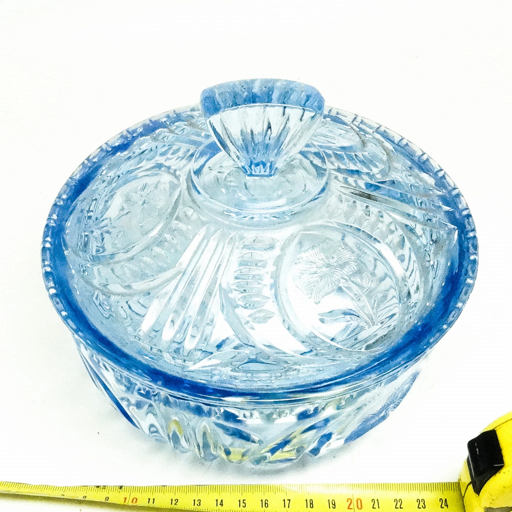 Naczynie o ozdobnej formie, wysokiego pucharu na szerokiej stopie, zamykane przykrywką.