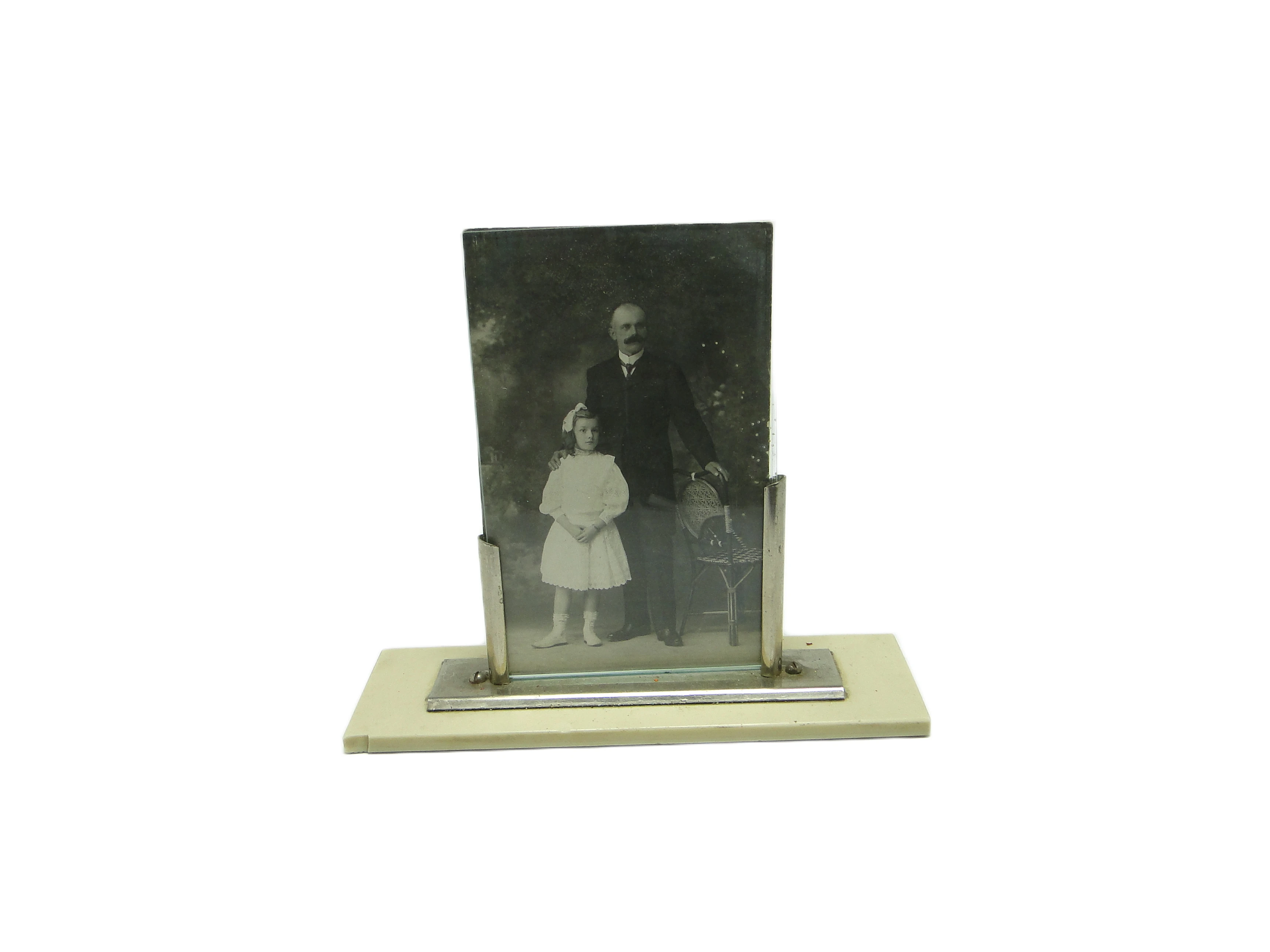 Ramka na zdjęcia Art Deco, szkło, mosiądz, bakelit ivory white, Niemcy, lata 50.