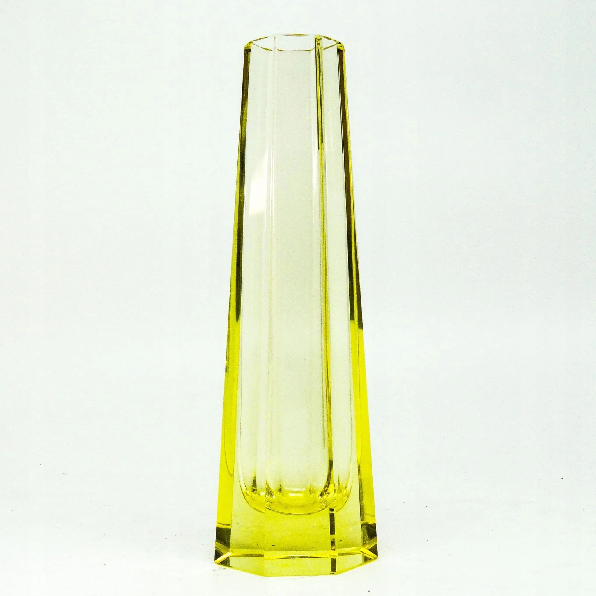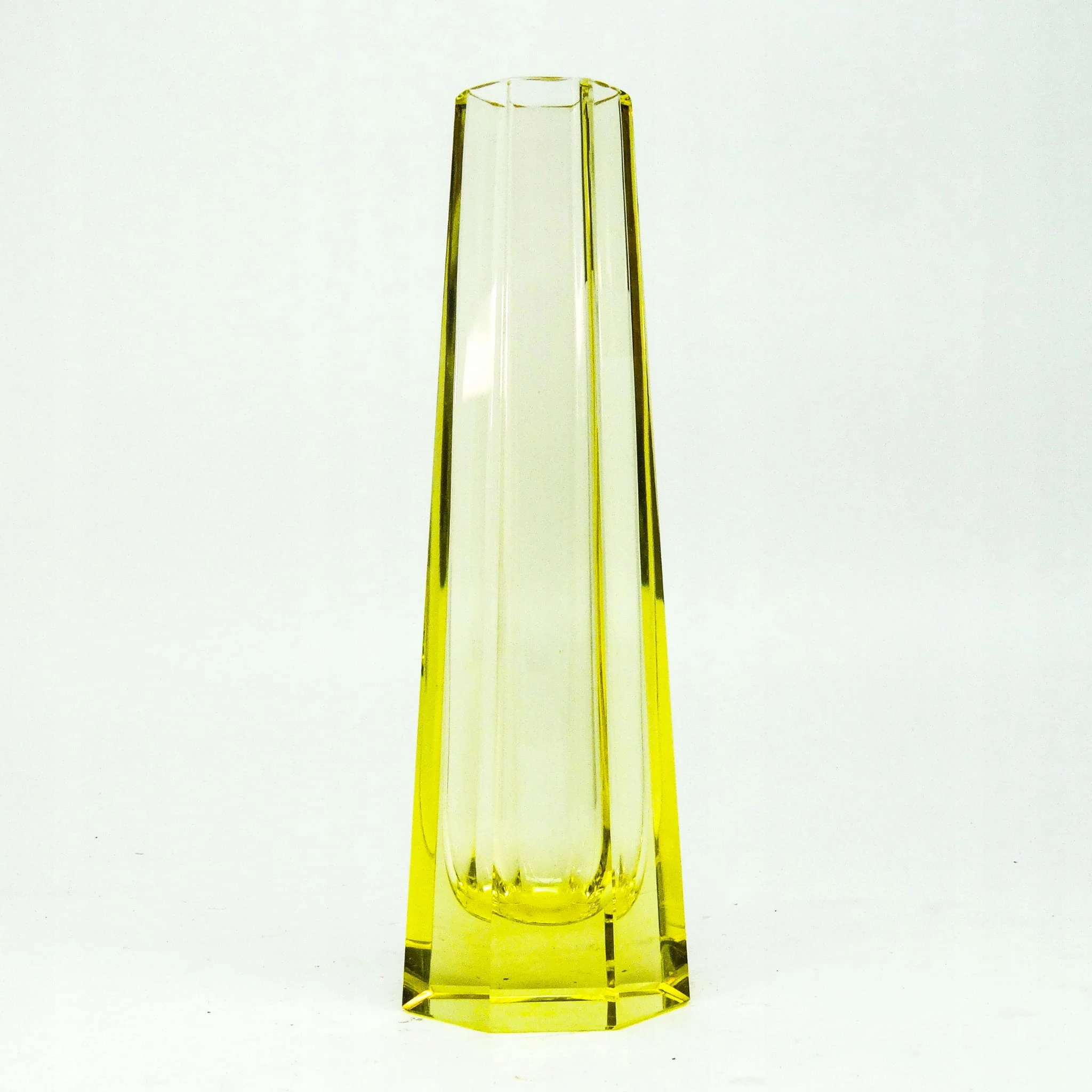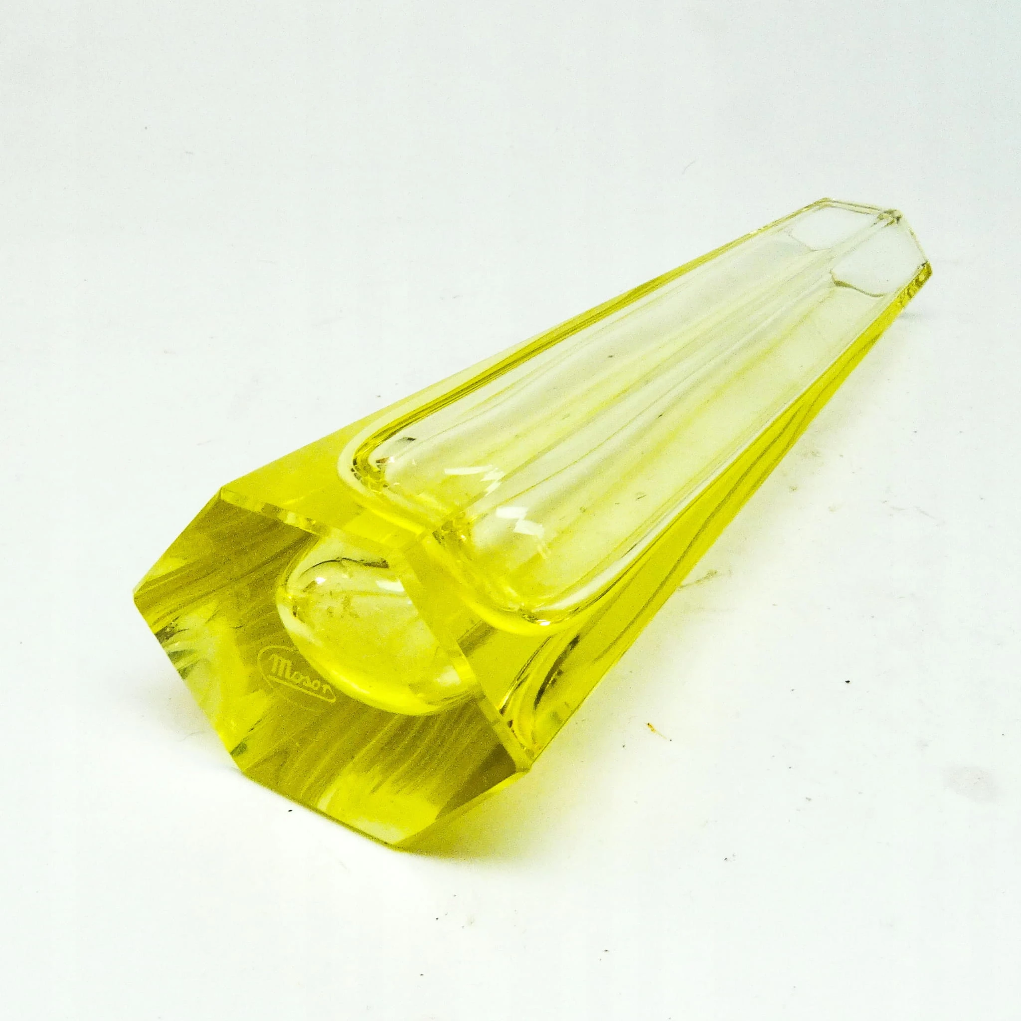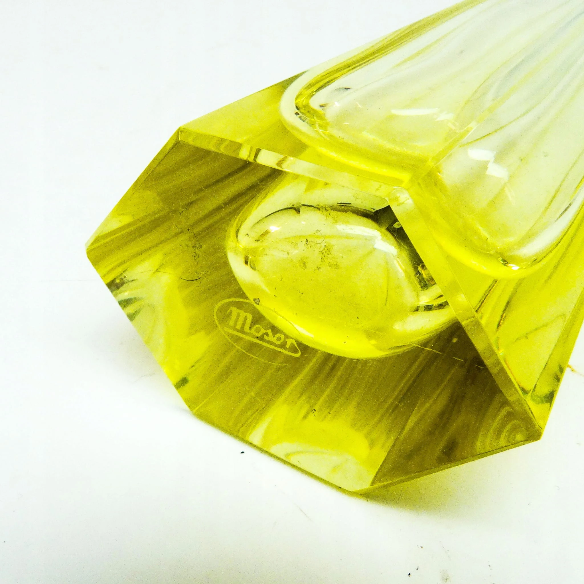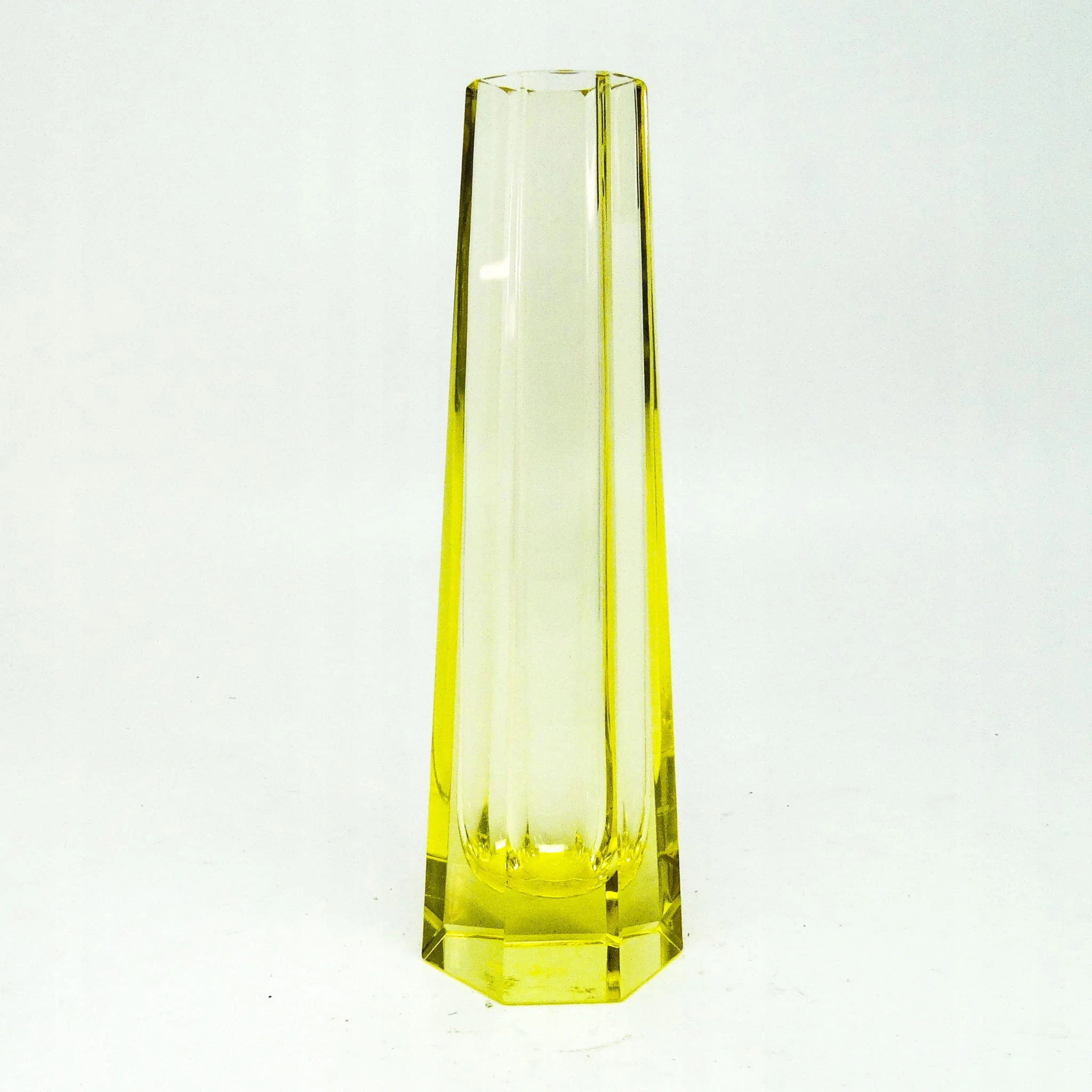 Wazon wyprodukowany został w Czechosłowacji w mieście Karlove Vary w latach 30. przez wytwórnie Moser. Wykonany jest z fasetowanego szkła. Zachowany jest w dobrym stanie. Sygnowany.