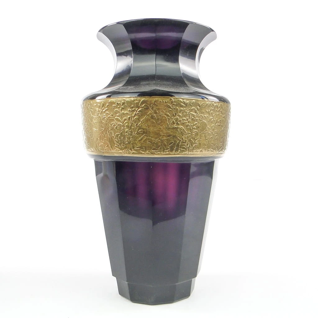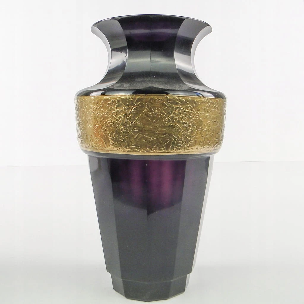 S5E UNIKAT Moser - wielki mangamowy wazon z oroplastyką ART DECO UNIKAT