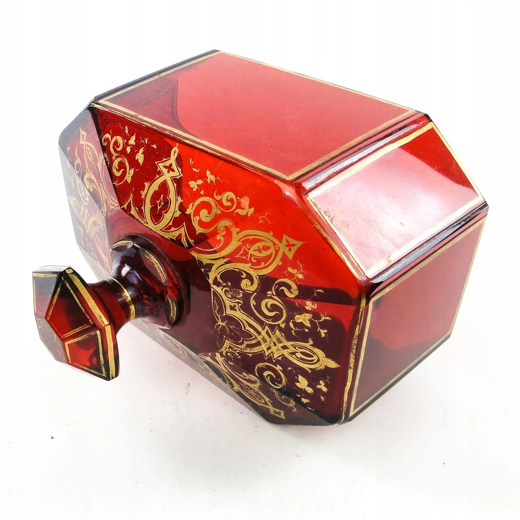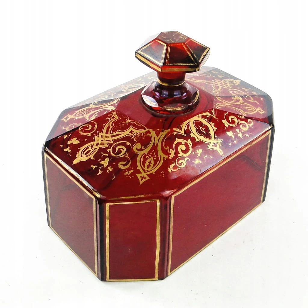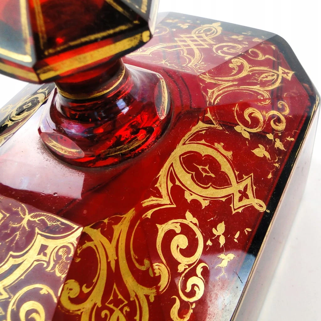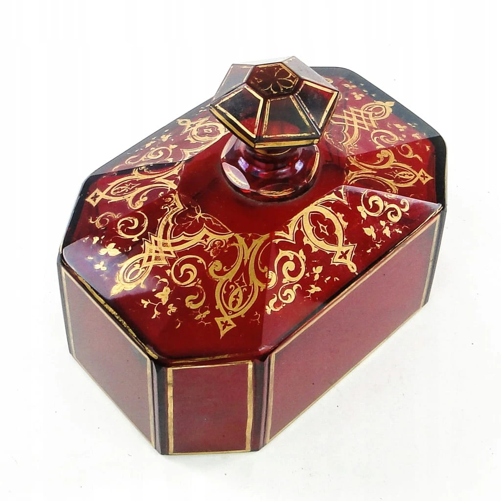 Klosz do ciasta z tacą został wyprodukowany na ternie Czech w latach 30. XIX w. Stan dobry. Kryształ w stylu biedermeier wraz ze złoceniami