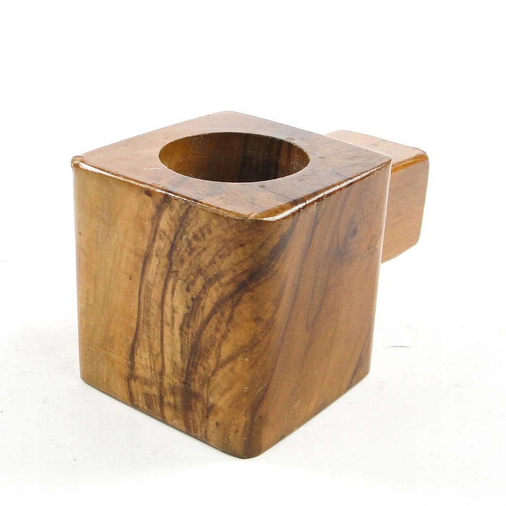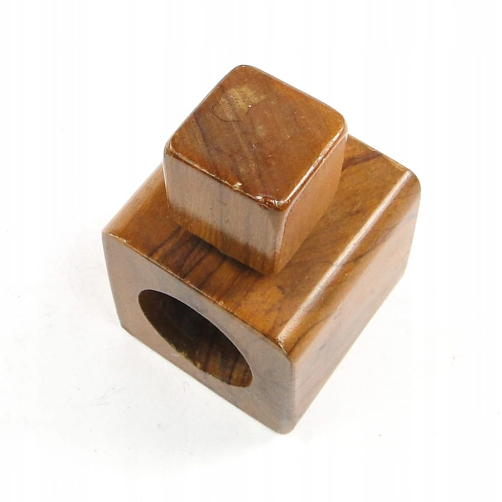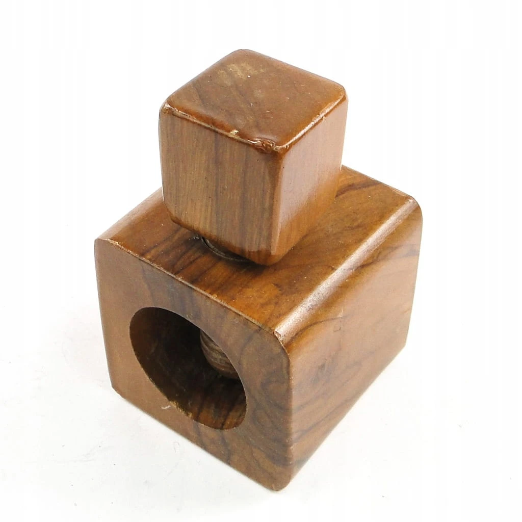Mechaniczny dziadek do orzechów w formie skorupki orzecha, wykonany z drewna.