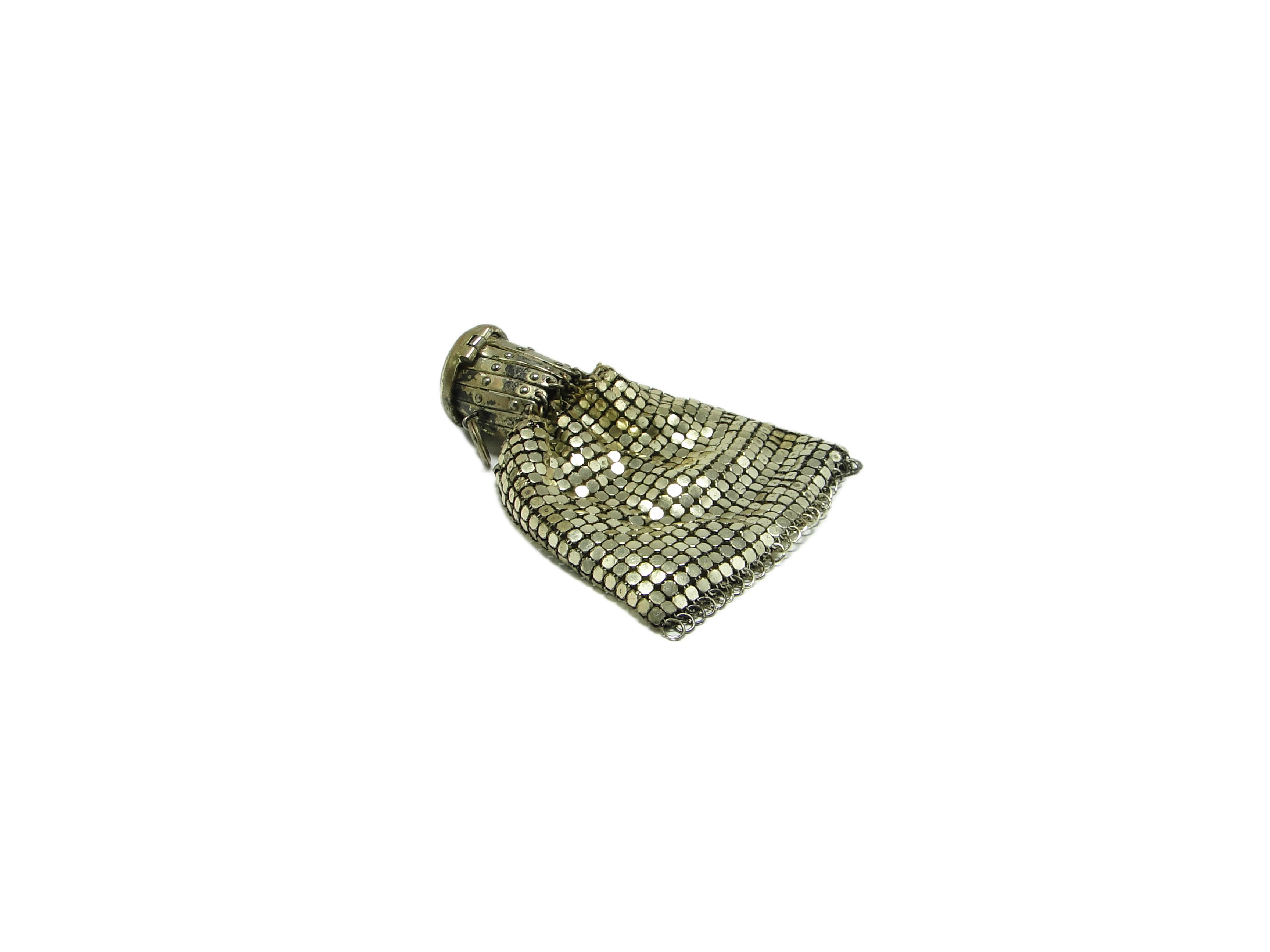 Sakiewka na bilon z lat 20. XX wieku, wykonana w Polsce, to przykład kunsztu rzemieślniczego epoki art déco. Korpus tworzy elastyczna siateczka z drobnych, srebrzonych płytek mosiężnych, które układają się w jednolitą, satynowo-matową powierzchnię o ciepłym, lekko pożółkłym odcieniu srebra. Zamknięcie w formie walca zdobi misterny, kwiatowy grawerunek oraz delikatne, dekoracyjne nity, typowe dla dekoracyjności wczesnego dwudziestolecia. Przy zamknięciu umieszczony jest niewielki pierścień do przypięcia sakiewki do chatelainy lub łańcuszka. Konstrukcja jest precyzyjna – przejście między siateczką a zamknięciem pozostaje płynne, a całość układa się miękko i naturalnie. Stan zachowania bardzo dobry – widoczne są jedynie subtelne ślady starzenia, jak delikatne przyciemnienia i minimalne przetarcia powierzchni, bez poważniejszych uszkodzeń czy śladów napraw.W tej sakiewce odbija się cichy rytm polskiego międzywojnia, kiedy codzienne akcesoria zyskiwały rangę dyskretnych ozdób. Satynowy połysk siateczki i subtelna patyna srebra przywołują obraz dawnego salonu, rozmów przy lampie, delikatnego dźwięku monet w drobnej dłoni. Kwiatowy grawerunek zamknięcia niesie w sobie echo czasów, gdy praktyczność i ozdobność łączyły się w harmonijną całość, a nawet najmniejszy przedmiot był dowodem wyczucia stylu właściciela.Sakiewka może być kolekcjonerskim detalem zamkniętym w gablocie z antykami lub wyeksponowana na toaletce w otoczeniu szkatułek, flakonów i srebrnych bibelotów. Można ją zestawić z innymi akcesoriami z epoki – broszami, zegarkami kieszonkowymi – albo połączyć z nowoczesnymi dodatkami, by podkreślić wyrazisty kontrast starego i nowego. Na konsoli w przedpokoju lub w gabinecie kolekcjonera odnajdzie się jako subtelny akcent, prowokujący do rozmowy o historii przedmiotów.
