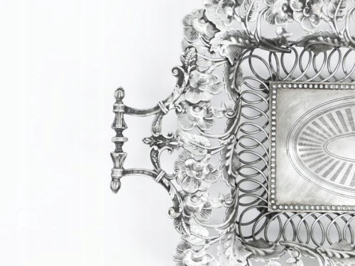 wzorzystymi uchwytami oraz motywami florystycznymi. Giloszowany.