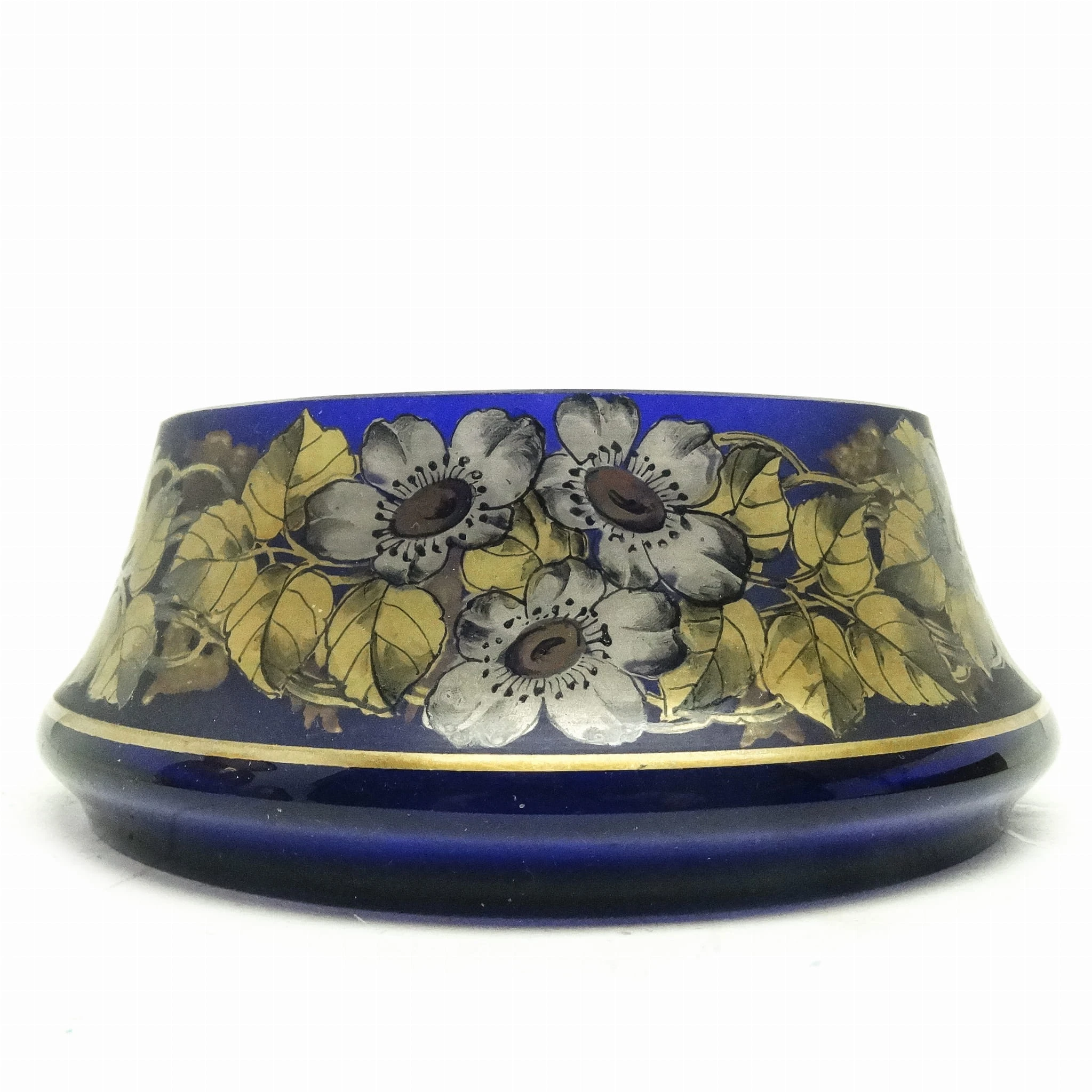 Wykonana ze szkła szlifowanego i zdobionego złoceniami.