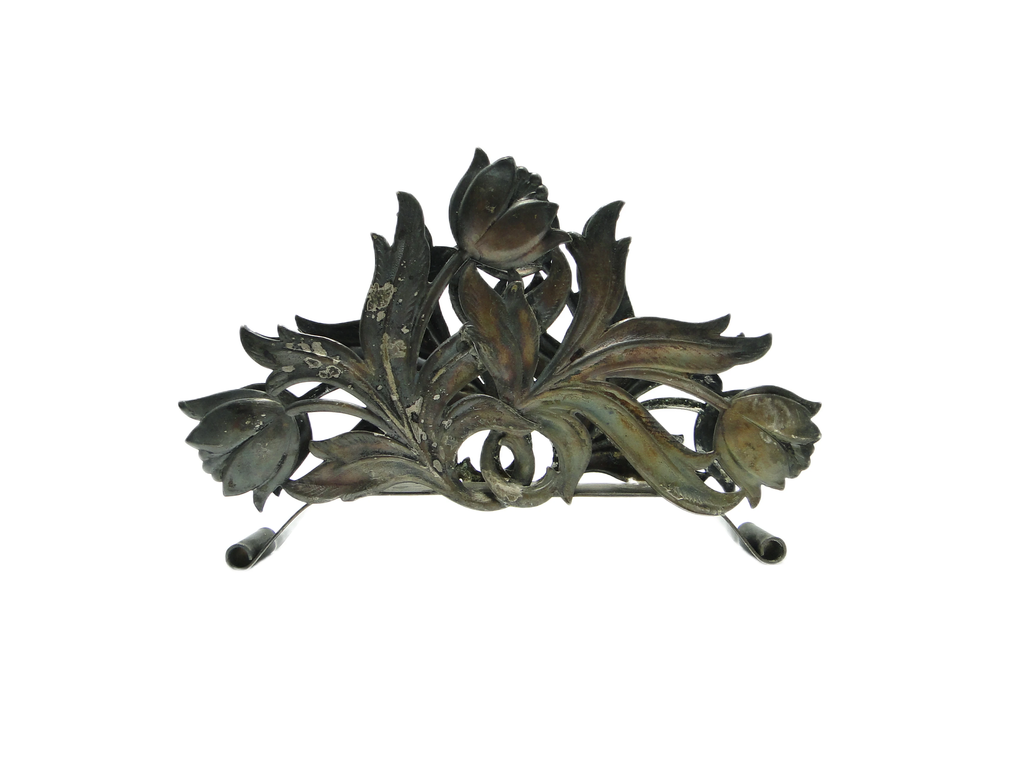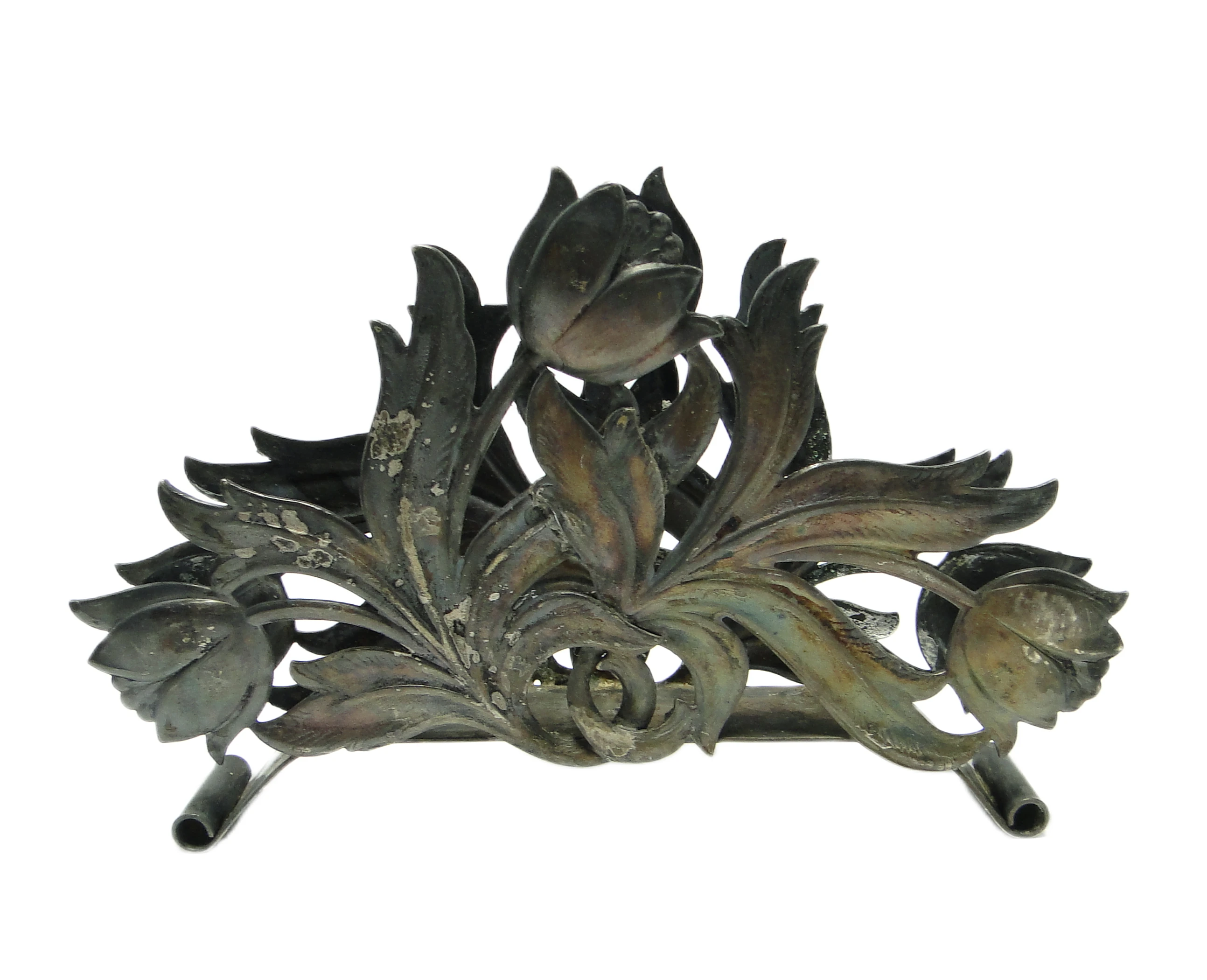 Serwetnik Tulipany, Art Nouveau, mosiądz srebrzony, Polska, lata 60.
