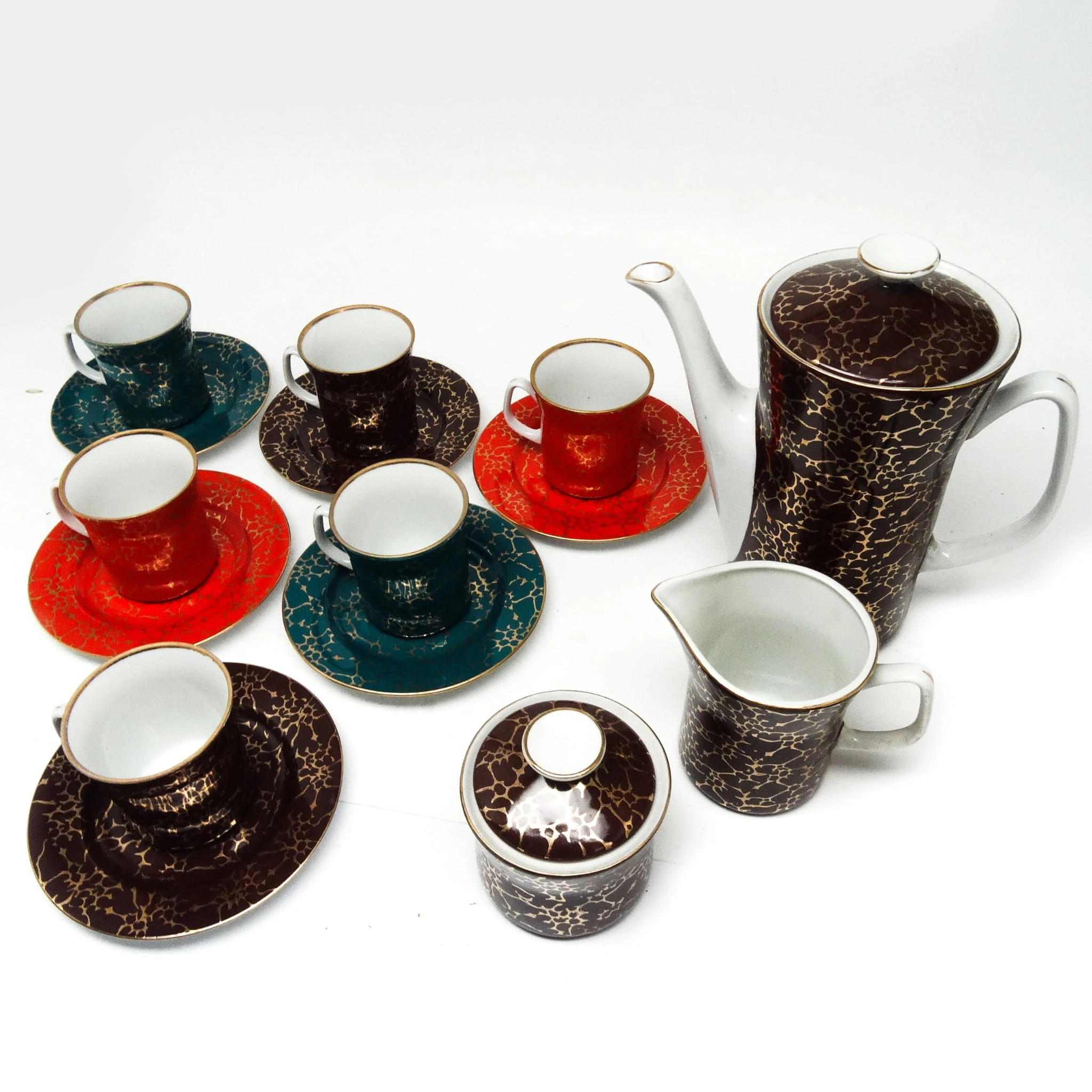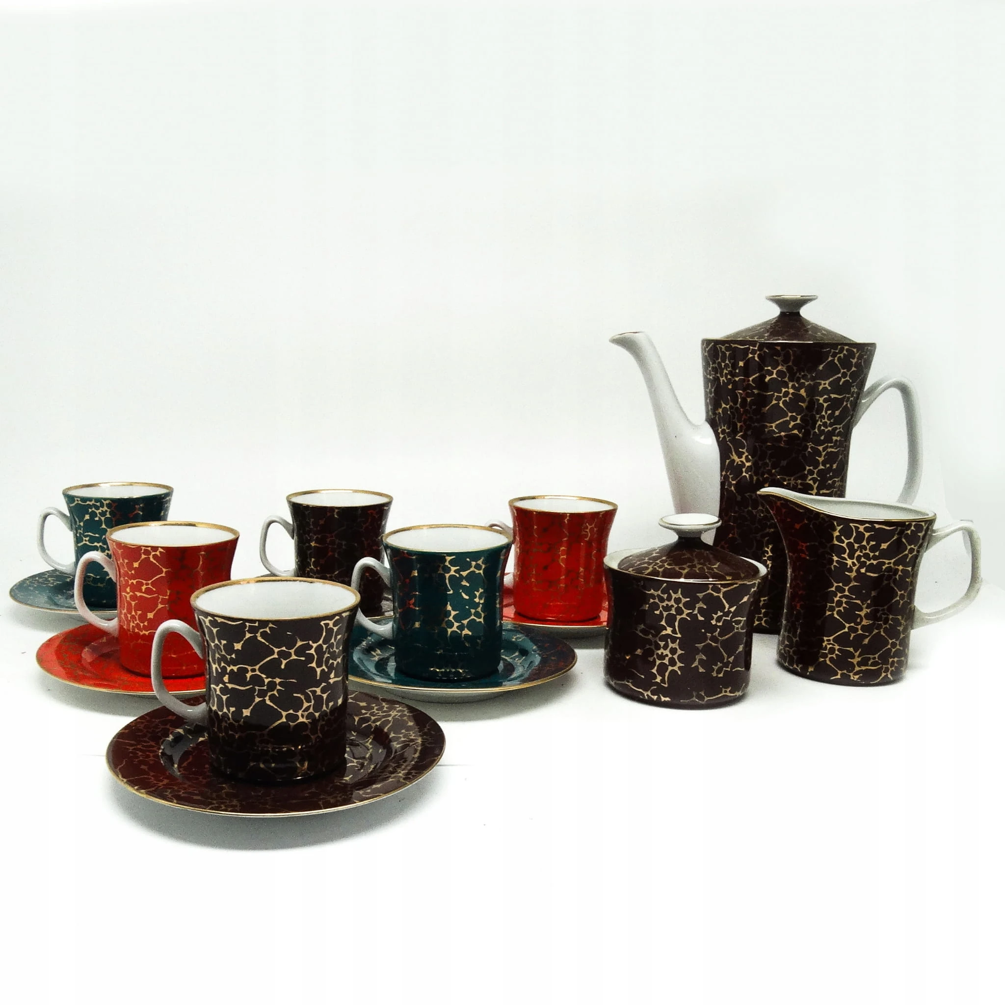 Serwis do kawy wykonany został we Włocławku. Wykonany w latach 60. Zachowany w dobrym stanie.