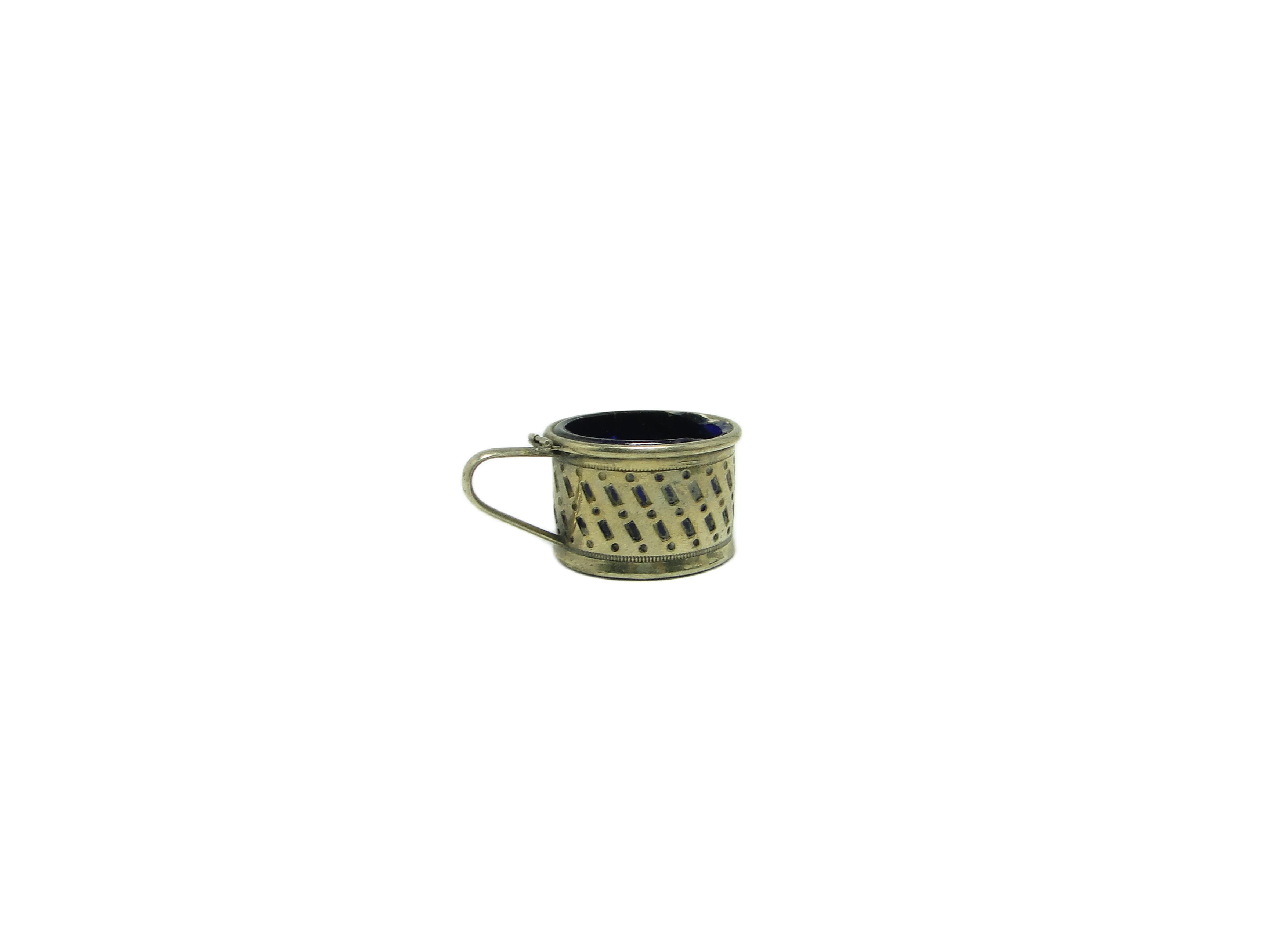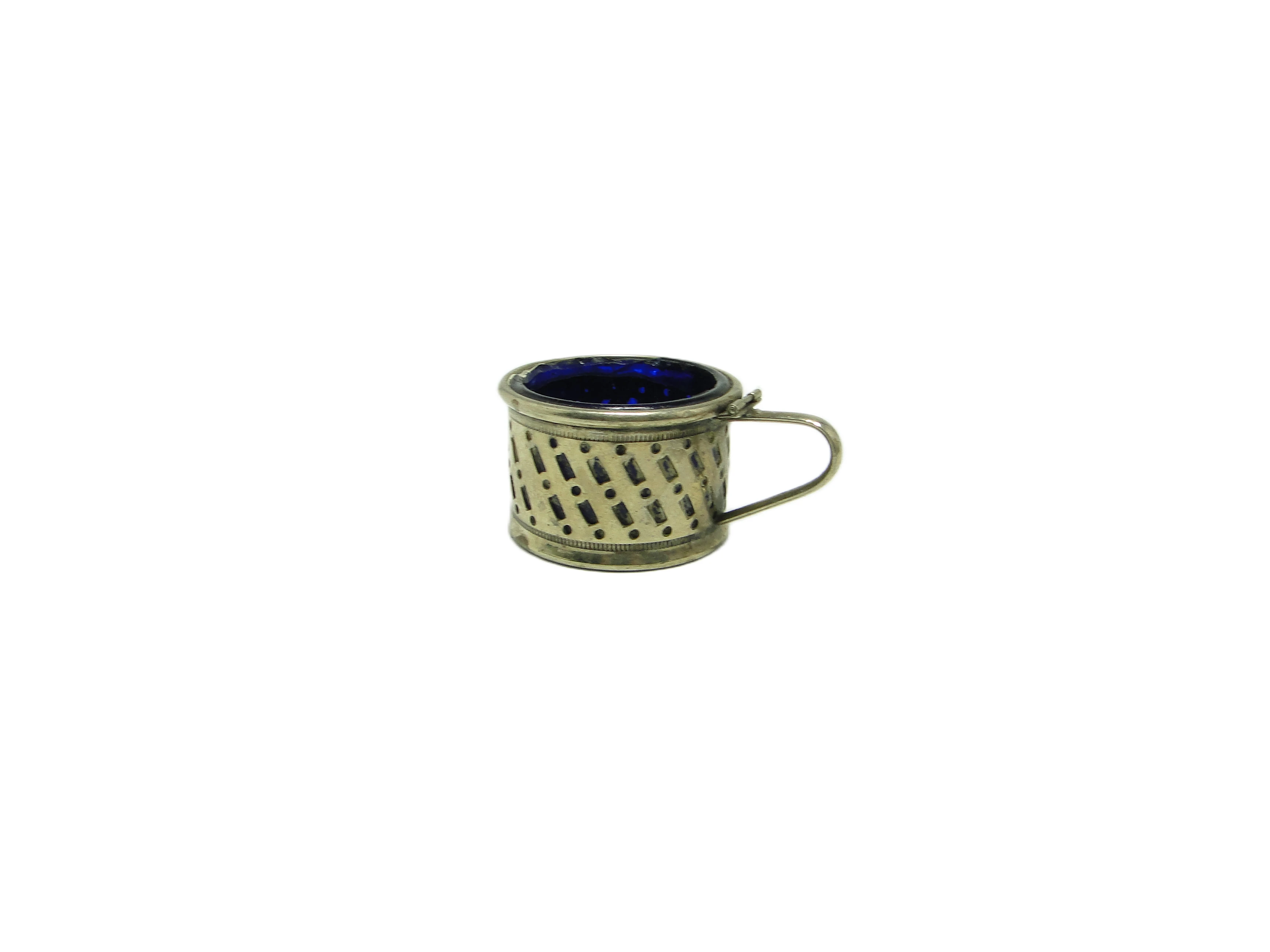 Solniczka wykonana w Szwecji w latach 30. XX wieku to przykład rzemiosła art déco, w którym srebrzony mosiądz zyskuje delikatnie matowy, złocisty odcień. Korpus zdobi powtarzalny, ukośny wzór z drobnych emaliowanych akcentów w tonacji ciemnego granatu lub czerni, nadający przedmiotowi geometryczny rytm. Obręcz i podstawa pozostają gładkie, wzbogacone jedynie detalem subtelnego perełkowania, a cienki, zaokrąglony uchwyt, przymocowany w dwóch punktach, harmonijnie dopełnia całość. Wnętrze naczynia wyłożone jest wkładem z głębokiego, kobaltowego szkła, który kontrastuje z metaliczną powierzchnią i podkreśla walory wizualne. Proporcje solniczki są klasyczne – niska, szeroka bryła z wyważonym detalem. Stan zachowania bardzo dobry, z zachowaną lekką patyną typową dla wieku, bez śladów renowacji i widocznych uszkodzeń.Ten niewielki przedmiot przywołuje atmosferę szwedzkiego stołu okresu międzywojennego, gdzie rzemiosło spotykało się z nowoczesną, geometryczną dyscypliną art déco. Mosiężna powierzchnia, z delikatną mgiełką patyny, opowiada o upływie czasu i dbałości o detal, która nie wymagała ostentacji. Powtarzalny wzór emalii odsyła do epoki, gdy funkcjonalność i estetyka były równie istotne, a kobaltowe szkło we wnętrzu odbija światło niczym lustro dawnych spotkań przy rodzinnym stole.Solniczka dobrze odnajdzie się na stole jadalnianym utrzymanym w duchu klasycznym lub art déco, zestawiona z porcelaną o geometrycznych liniach lub szkłem w chłodnych odcieniach. Można ją połączyć z innymi srebrzonymi akcesoriami lub szklanymi naczyniami z metalicznymi detalami, by podkreślić spójność aranżacji. Wnętrza o stonowanej kolorystyce, z akcentami granatu, szarości lub czerni, wydobędą zarówno subtelny połysk metalu, jak i intensywny błękit kobaltowego szkła.