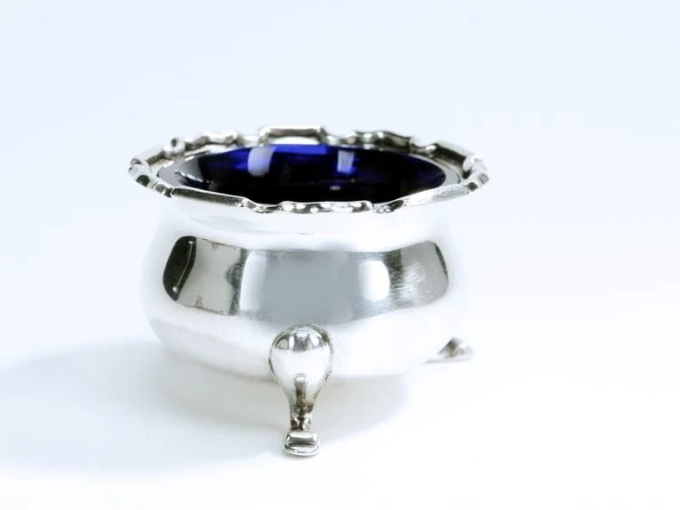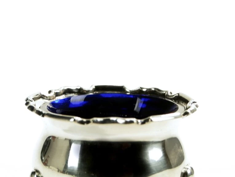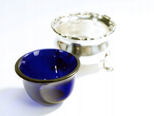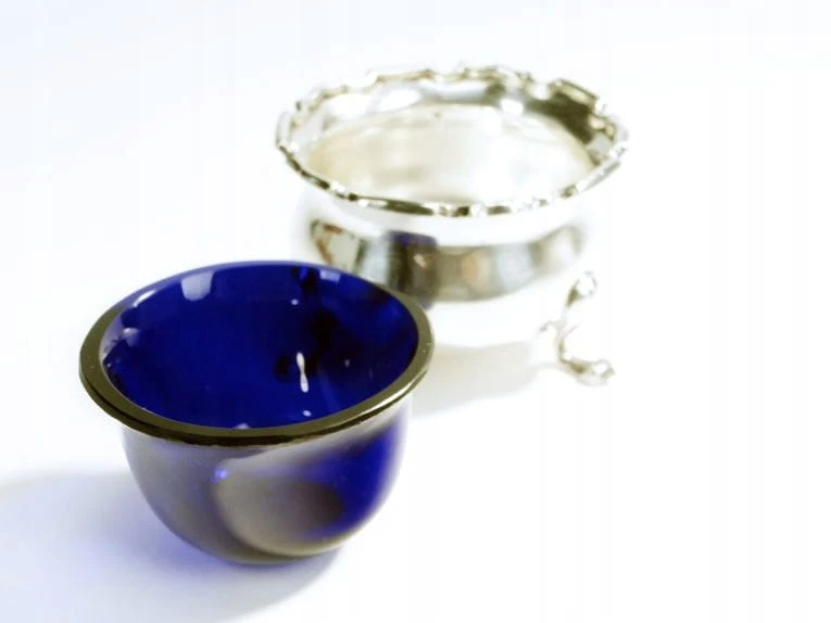 Przepiękna angielska solniczka z kobaltowym wkładem. Powstała ona w Wielkiej Brytanii - dedykowana.