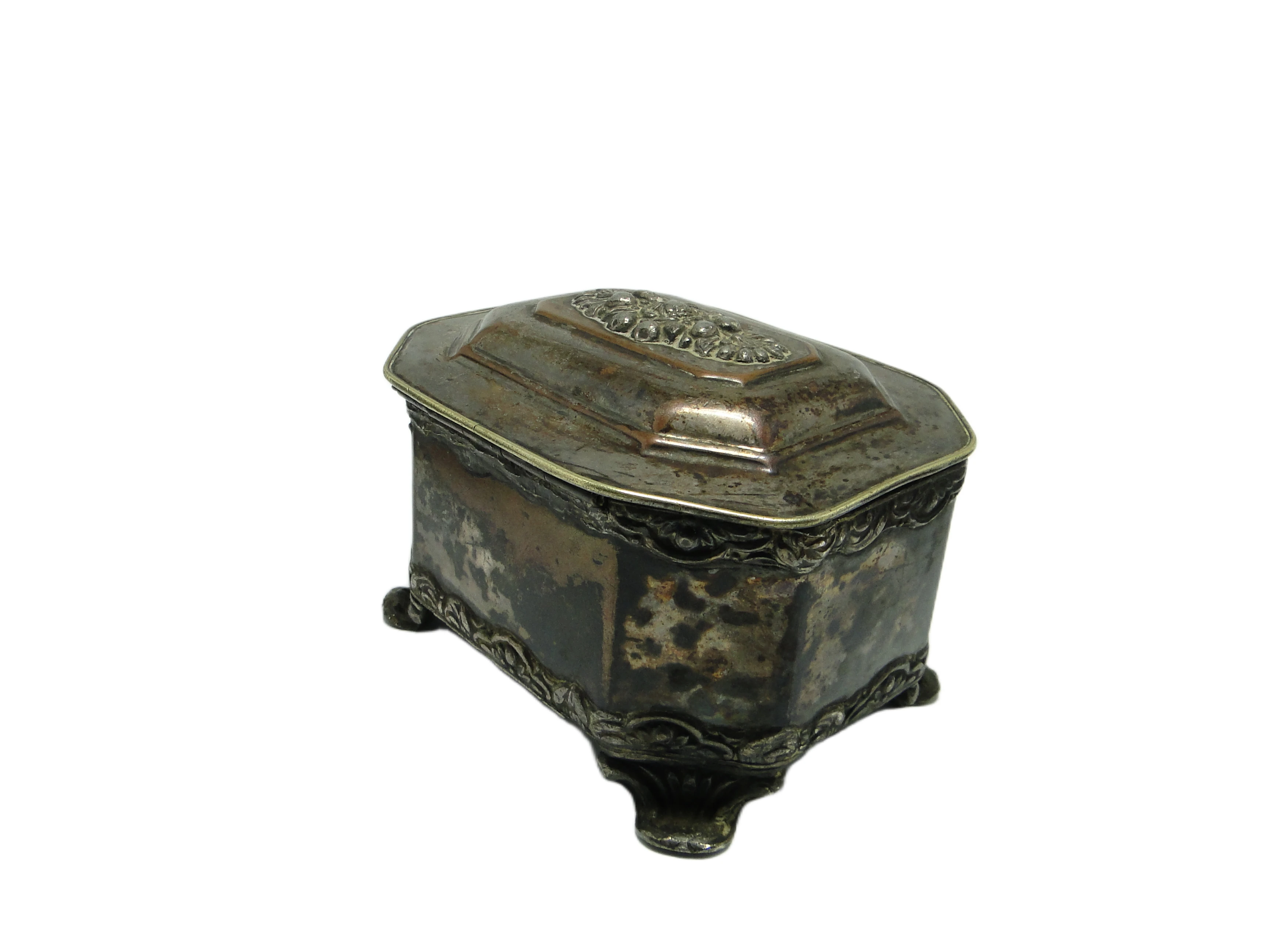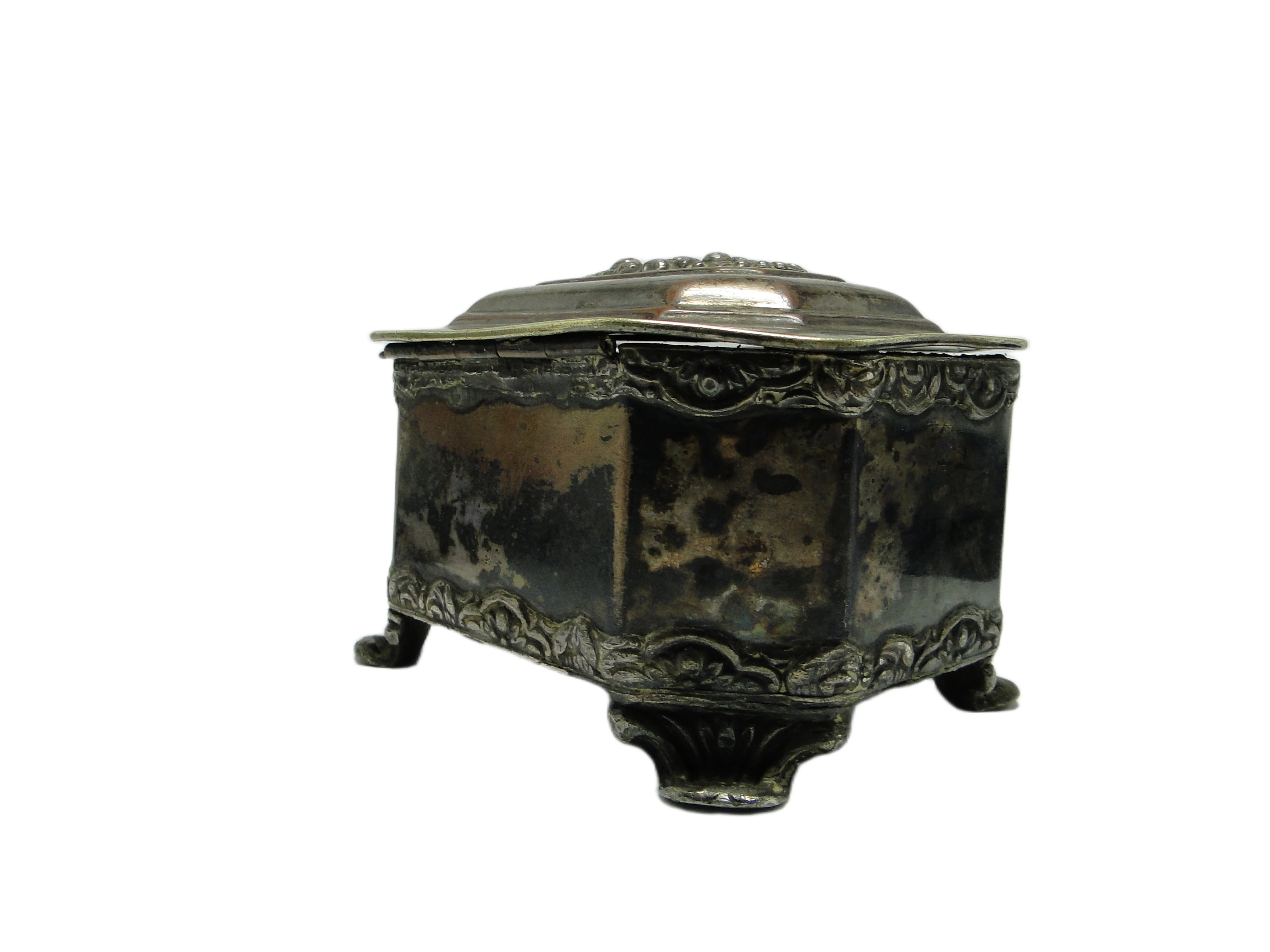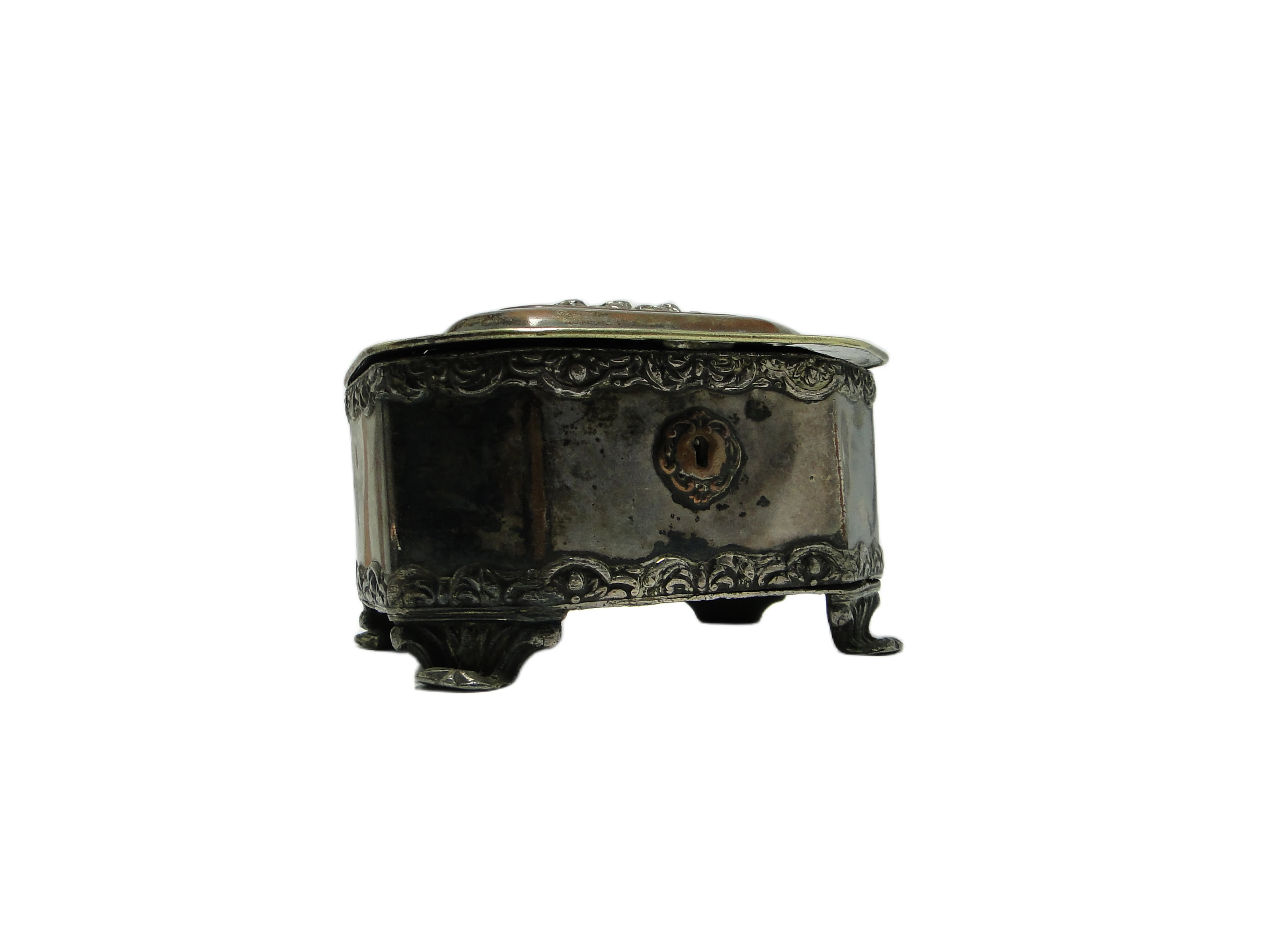 Szkatuła neorokokowa, miedź srebrzona, Polska, XIX w.