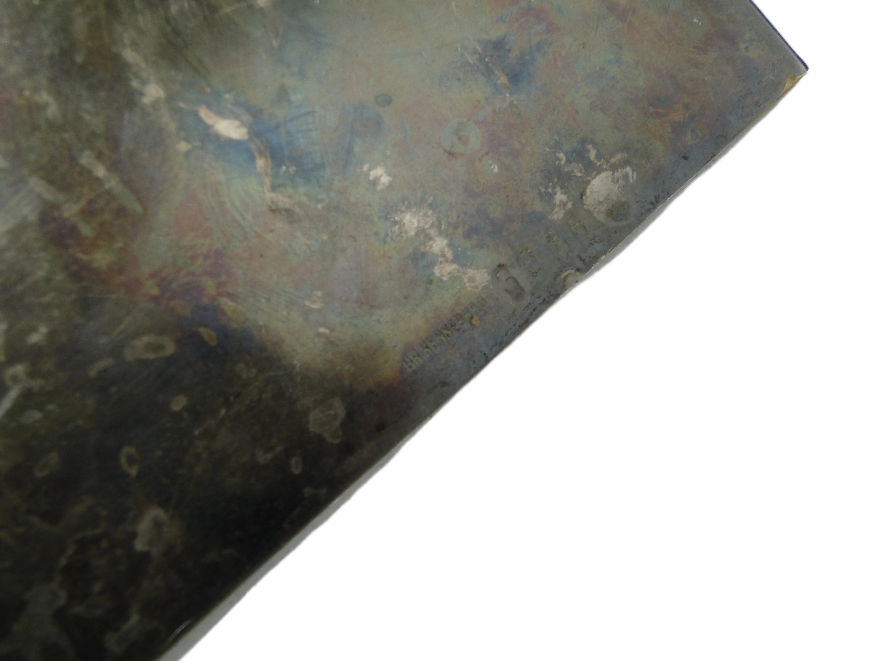 Szufelka do okruchów z lat 30. wykonana w Polsce według kanonów Art Deco, to przykład rzemiosła użytkowego o przemyślanej, geometrycznej formie. Stworzona z mosiądzu pokrytego srebrem, ma półokrągły, wachlarzowy kształt z wyrazistą, podwójną ramką oraz stylizowanym, kanciastym uchwytem. Powierzchnia utrzymana jest w przygaszonym, chłodnym srebrze, z miejscową patyną, licznymi drobnymi rysami, ciemniejszymi plamami i przebarwieniami – są to naturalne ślady starzenia, które akcentują autentyczność. Matowa faktura z delikatnymi połyskami w wypukłych partiach oraz solidna, masywna konstrukcja wpisują się w modernistyczną dyscyplinę lat 30. Brak poważnych uszkodzeń, wszystkie elementy pozostają oryginalne i nieodnawiane. Stan zachowania bardzo dobry jak na wiek, z widocznymi śladami użytkowania podkreślającymi historyczny charakter przedmiotu.W tej szufelce wybrzmiewa głos przedwojennego modernizmu: geometryczna harmonia i chłód srebrzonego metalu mówią o dążeniu do porządku, nawet w codziennych rytuałach. Subtelny połysk i miejscowa patyna sugerują jej długą obecność na stołach dawnych salonów, gdzie była nie tylko narzędziem, lecz także milczącym świadkiem spotkań, rozmów i gestów. Każda rysa to zapis minionych dekad, a architektoniczna linia uchwytu przywołuje optymizm i dyscyplinę polskiego Art Deco, w którym nawet drobne akcesoria były projektowane z myślą o harmonii i funkcji.Szufelka może znaleźć miejsce na klasycznej konsoli, marmurowym blacie czy w kolekcji przedmiotów z lat 30., tworząc wyrazisty akcent w salonie, bibliotece lub gabinecie. Warto zestawić ją z innymi detalami z epoki – chromowanymi świecznikami, geometrycznymi ramkami na zdjęcia, szklanymi puzderkami – by podkreślić jej modernistyczne korzenie. W nowoczesnej aranżacji dobrze sprawdzi się jako subtelny kontrapunkt: można połączyć ją z minimalistyczną ceramiką, naturalnym drewnem lub monochromatyczną paletą, gdzie patynowana powierzchnia wniesie warstwę historii i szlachetnej prostoty.