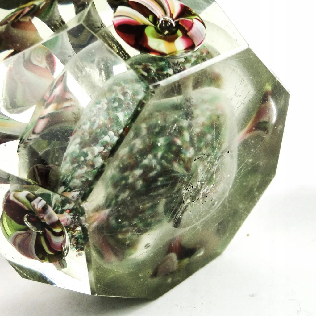 Przycisk do papieru wyprodukowany został w Niemczech około 1920. Powierzchnia jest wykonana ze szkła kryształowego - fasetowany. Zachowany jest w bardzo dobrym stanie.