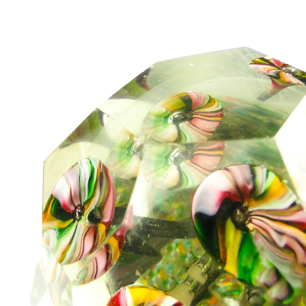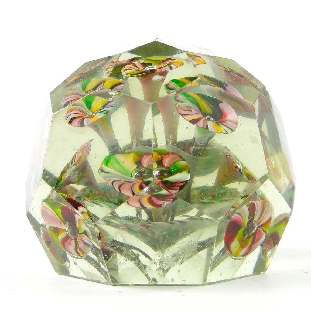 Przycisk do papieru wyprodukowany został w Niemczech około 1920. Powierzchnia jest wykonana ze szkła kryształowego - fasetowany. Zachowany jest w bardzo dobrym stanie.