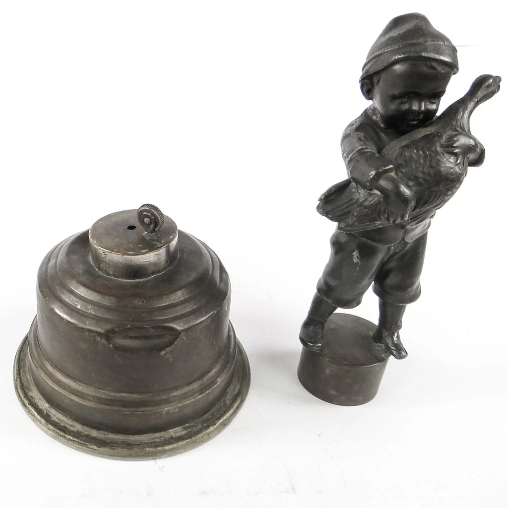 T6W Wielka figuralna zapalniczka z chłopcem na polowaniu ART DECO