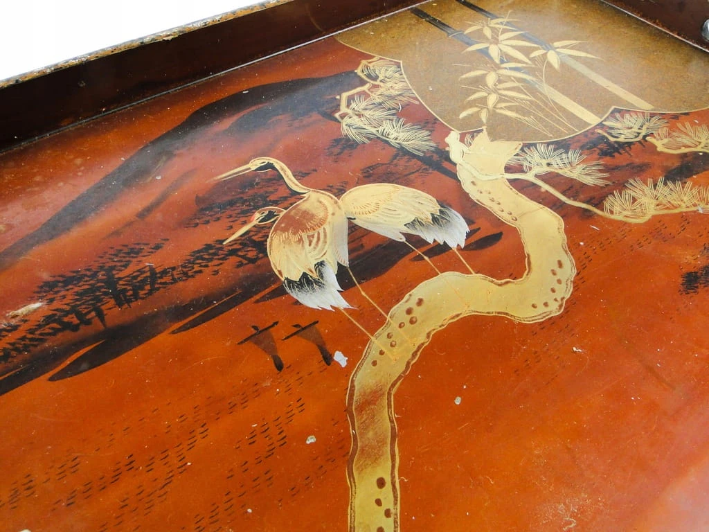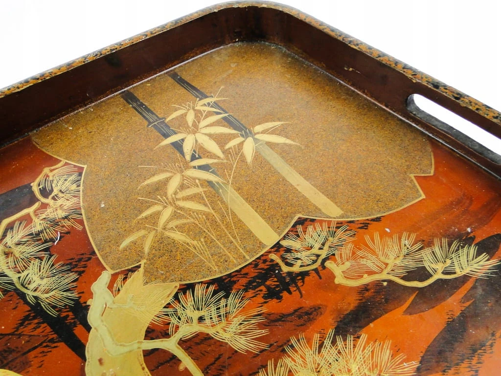 Taca wykonana została z laki w jednej z na terenie Japonii. Jest wykonana w stylu orientalnym. Stan jest dobry. Miejscowe przetarcia, wszystko na zdjeciach.