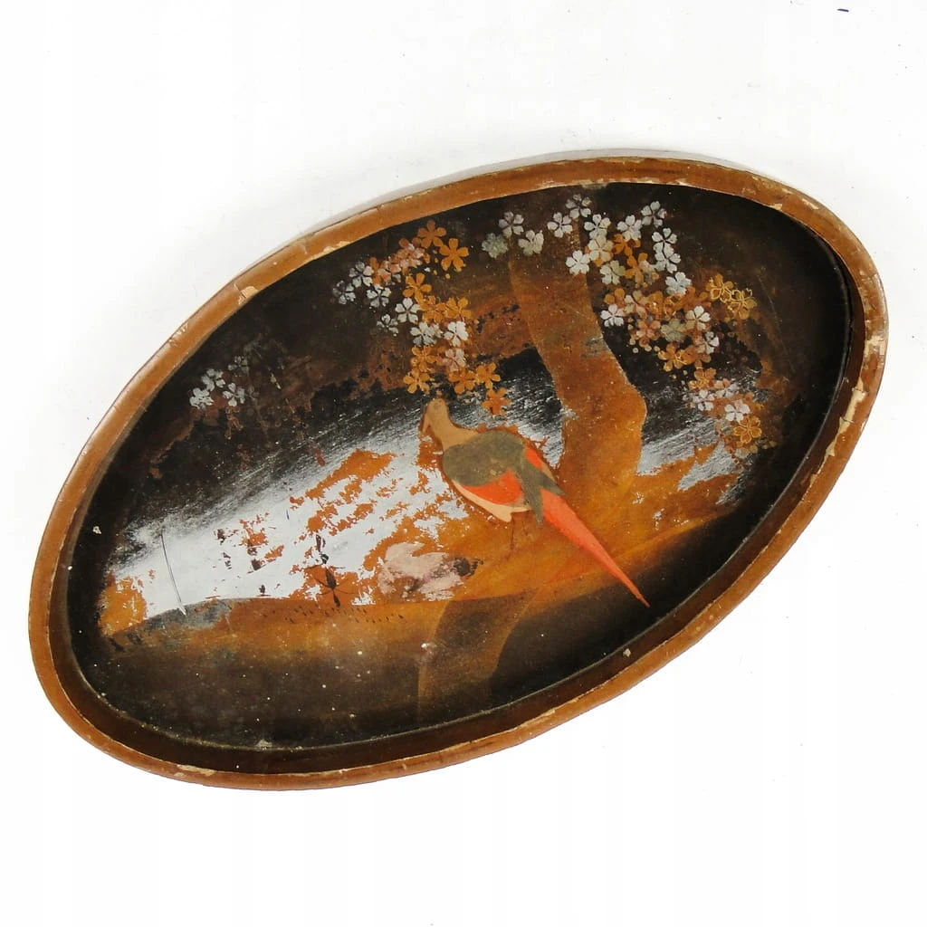 Taca wykonana została z laki w jednej z na terenie Japonii. Jest wykonana w stylu orientalnym. Stan jest dobry. Miejscowe przetarcia, wszystko na zdjeciach.
