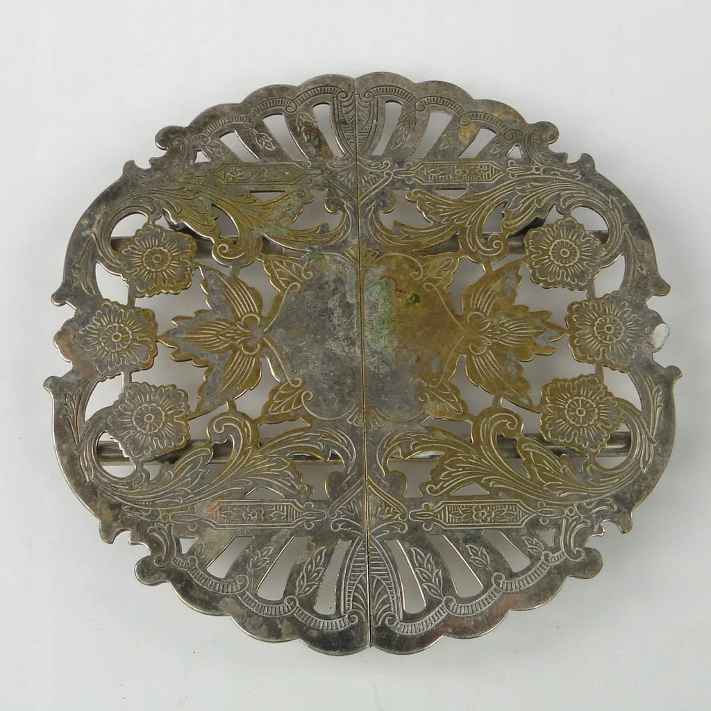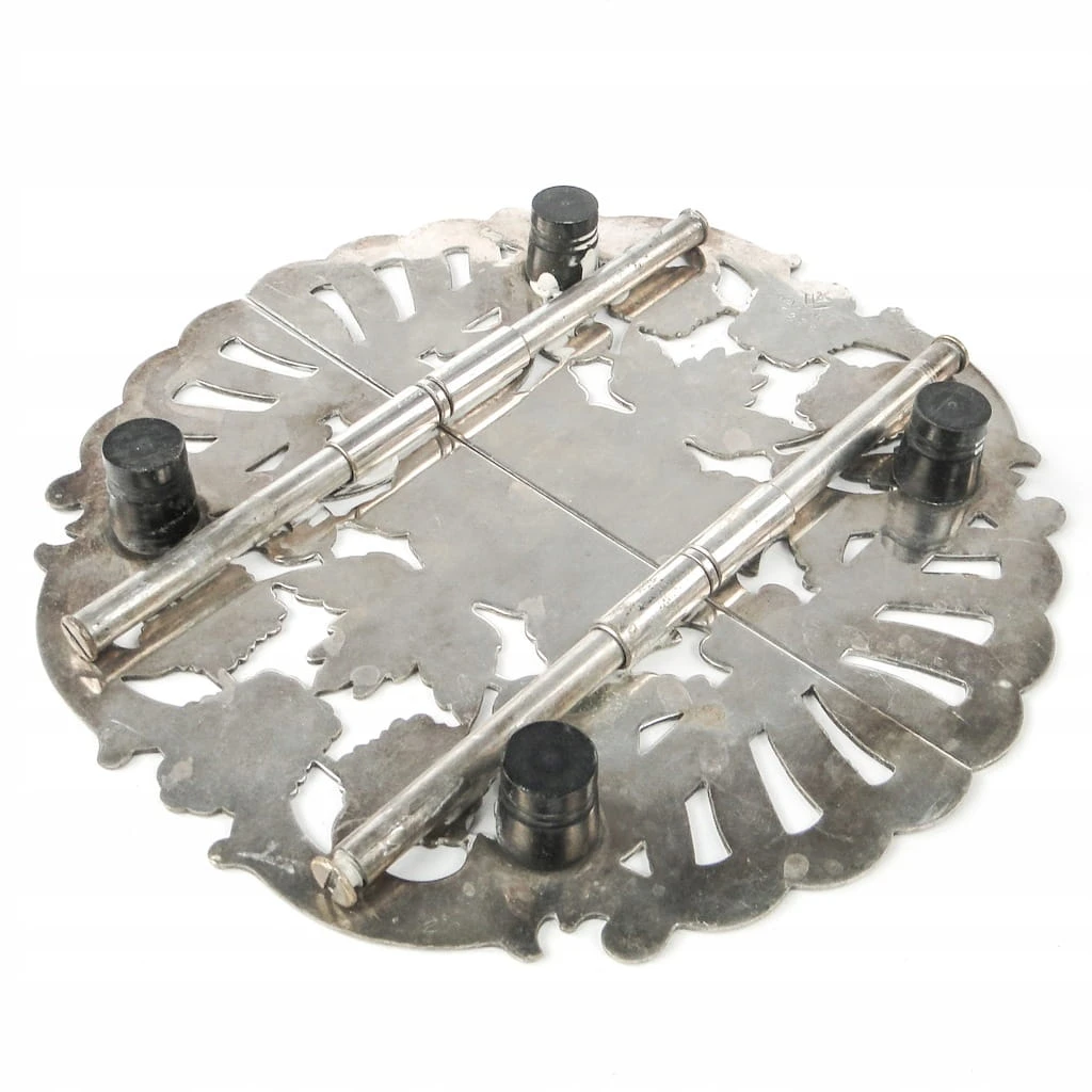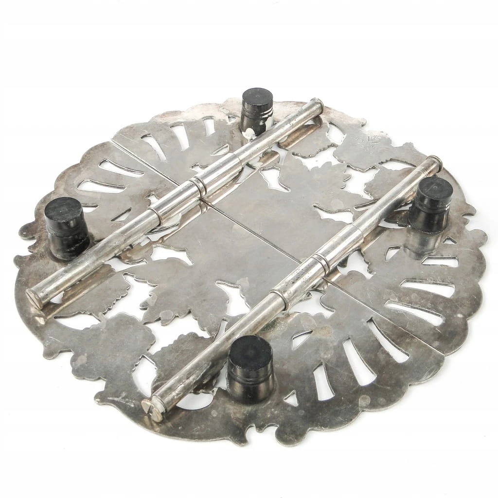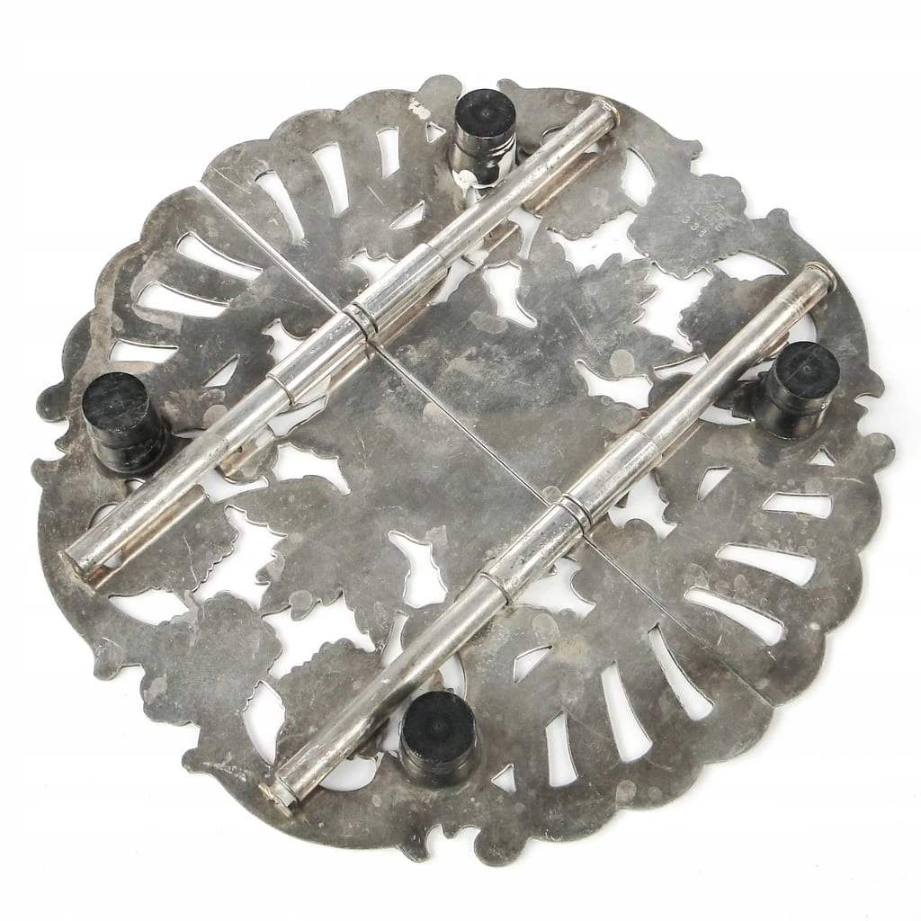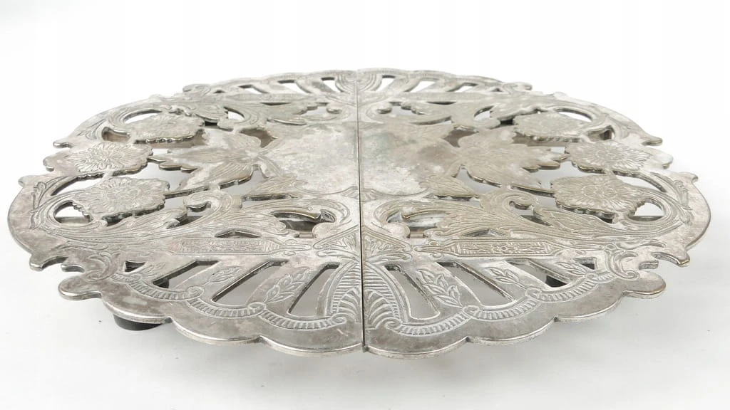 Taca została wykonana w wytwórni platerów w Danii. Pochodzi z lat 30. Stan dobry, przetarcia.