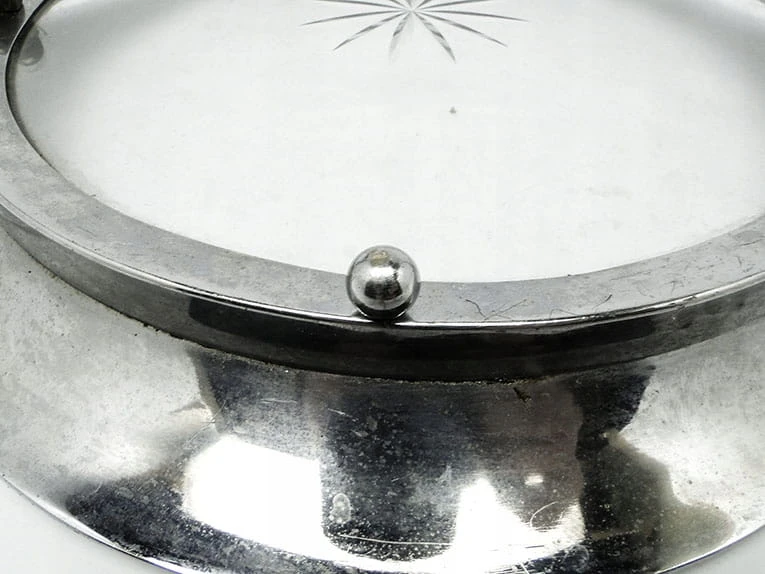 Taca pod kieliszki wsparta na kulistych nóżkach.